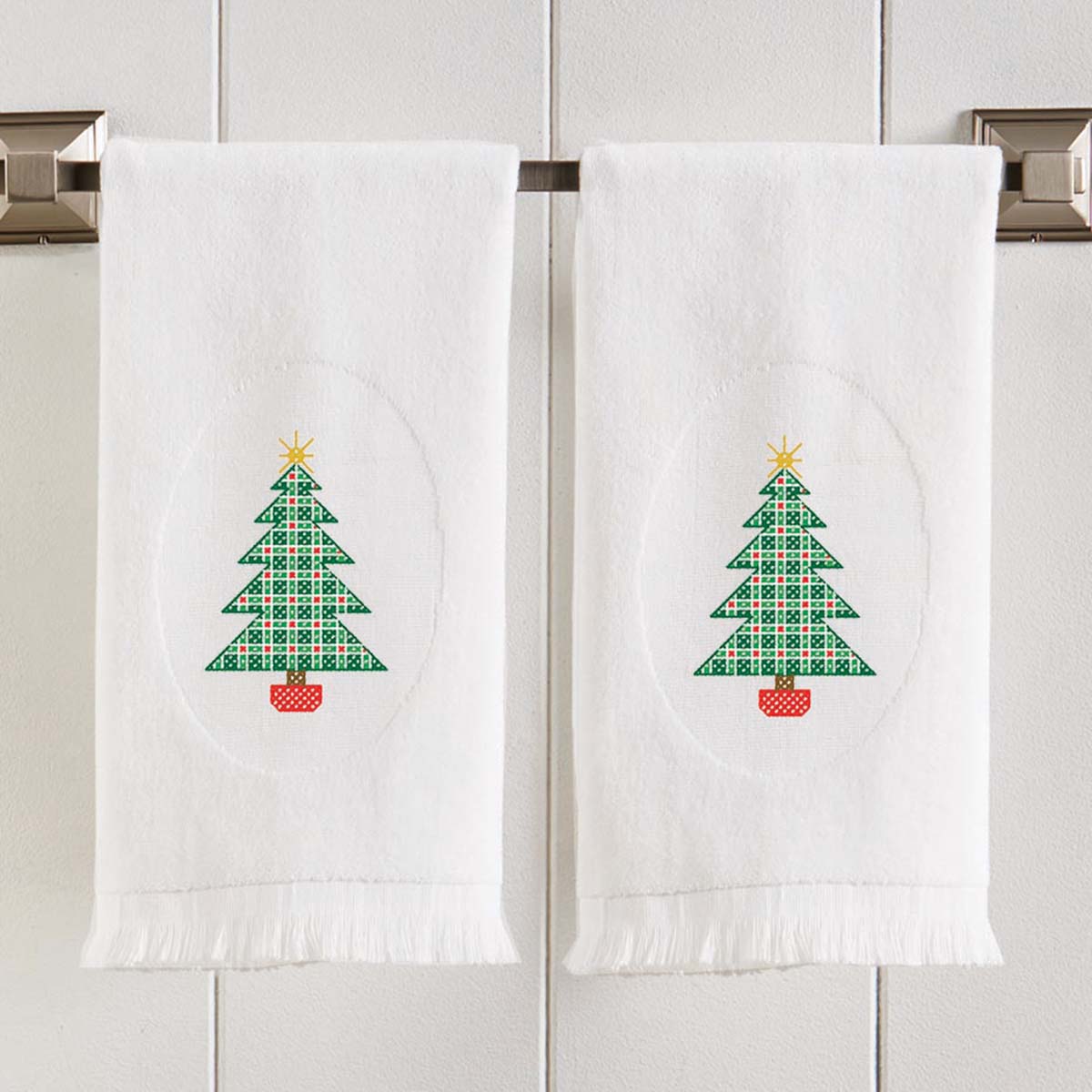 Herrschners Checkered Tree Terry Towel Pair Stamped Cross-Stitch