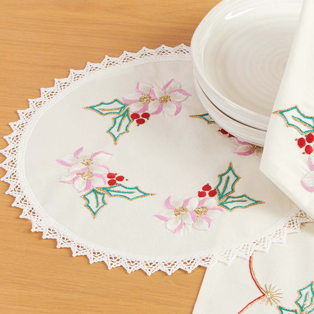 Herrschners Cheerful Tidings Doily Stamped Embroidery Kit