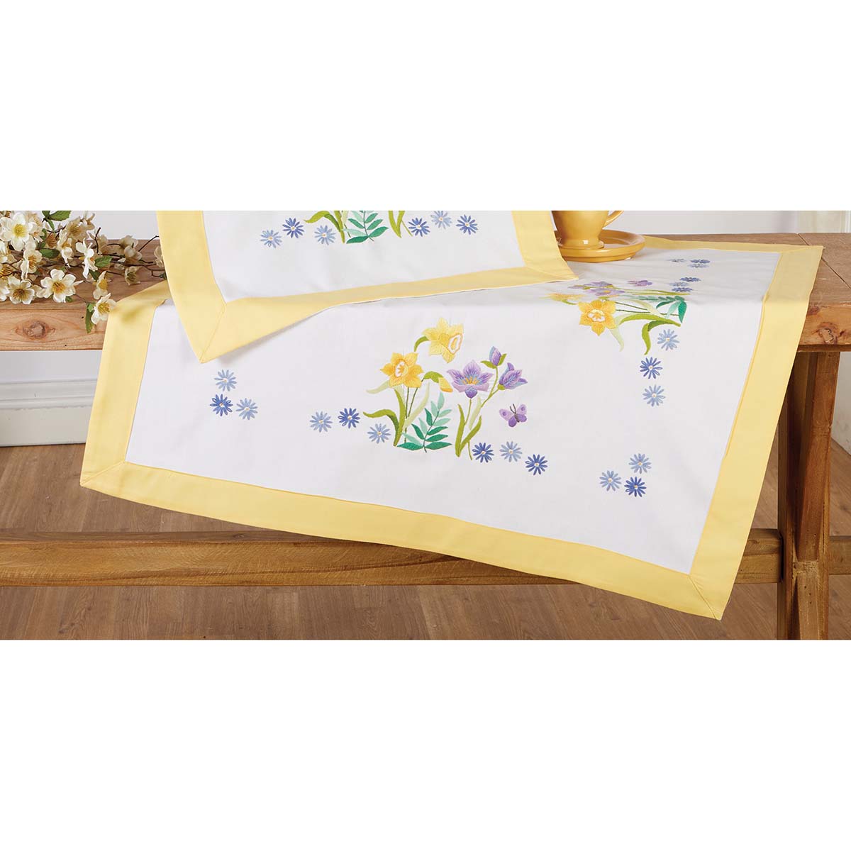 Herrschners Daffodil & Tulip Table Topper Stamped Embroidery Kit