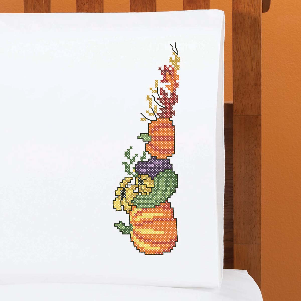 Herrschners Fall Fancy Pillowcase Pair Stamped Cross-Stitch
