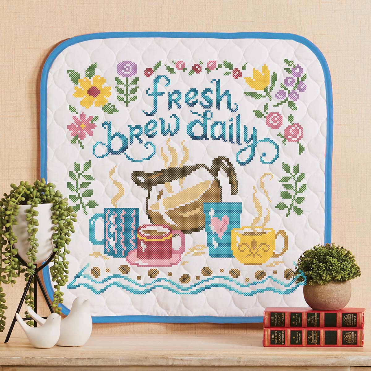 Herrschners Fresh Brew Daily Wall Hanging Stamped Cross-Stitch Kit