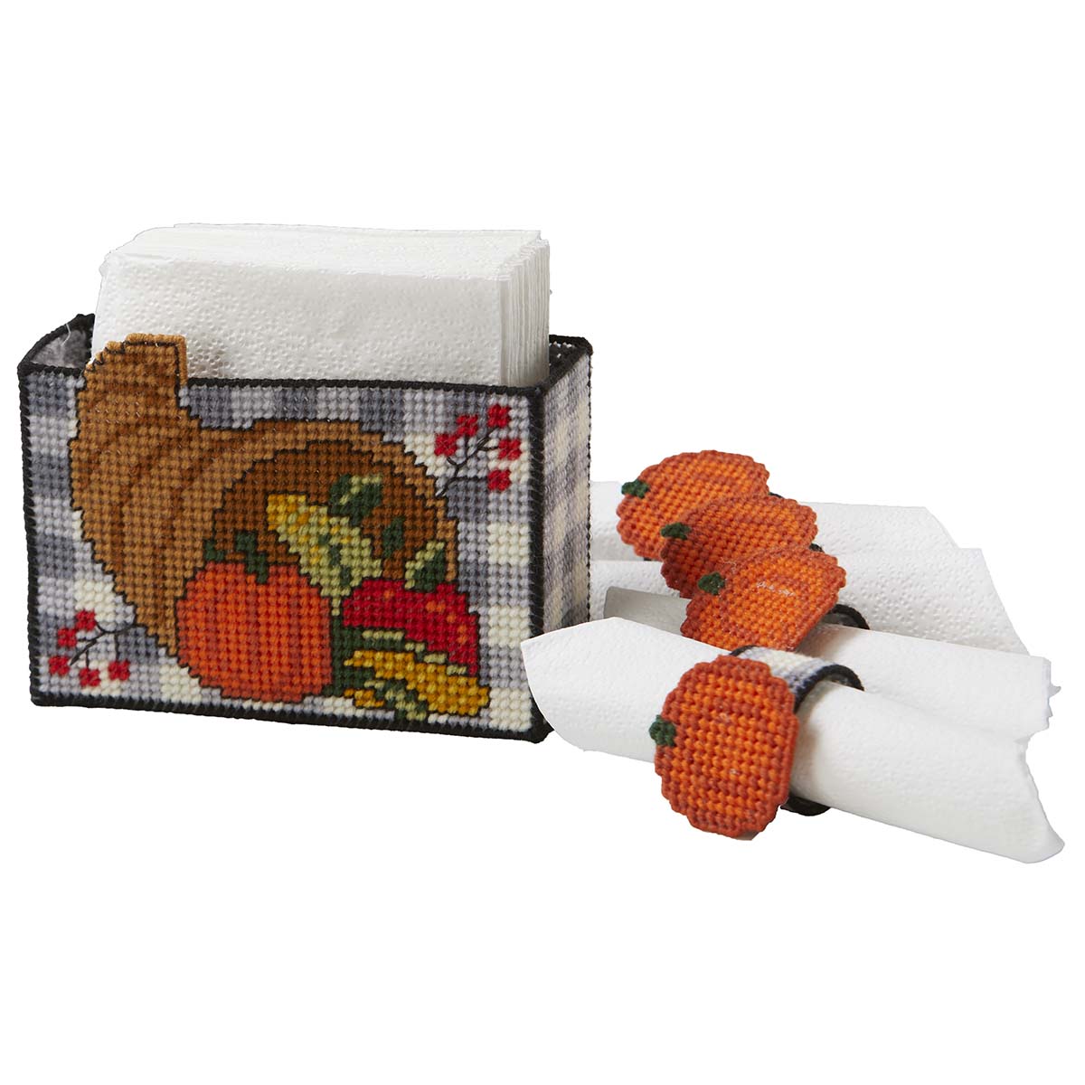 Herrschners Harvest Blessings Napkin Holder & Rings Plastic Canvas Kit