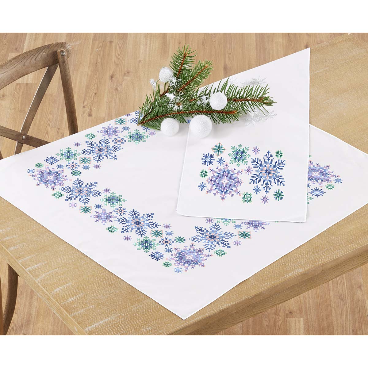 Herrschners Icy Snowflakes Topper & Runner Stamped Cross-Stitch