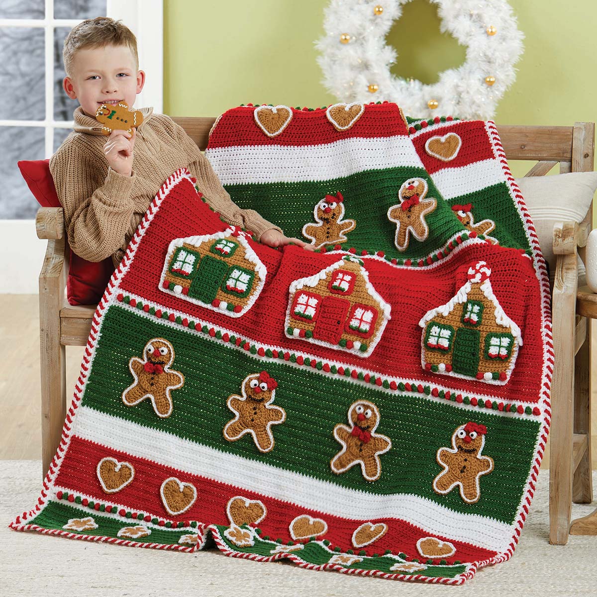 Herrschners  Jolly Gingerbread Afghan Crochet Yarn Kit