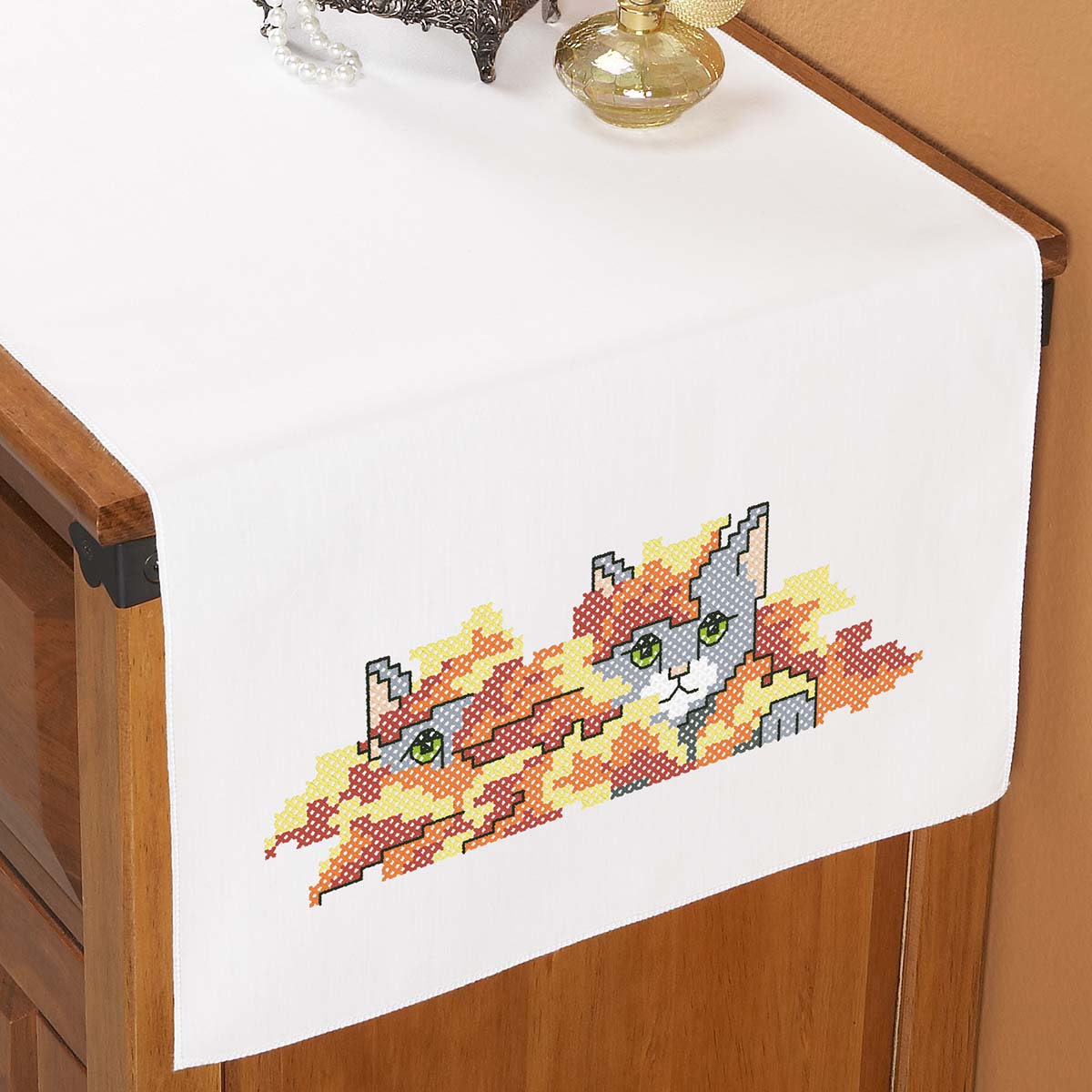 Herrschners Kitty Capers Dresser Scarf Stamped Cross-Stitch