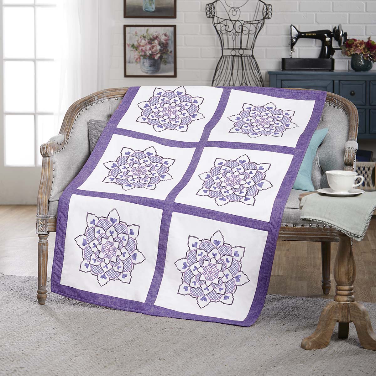 Herrschners Lavender Lace Quilt Blocks Stamped Cross-Stitch