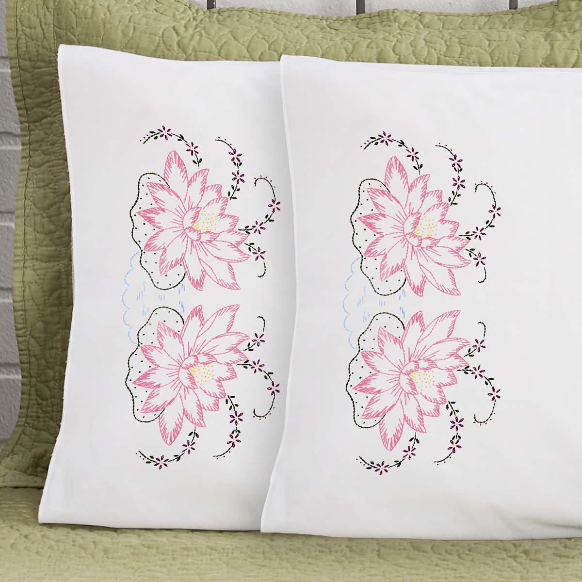 Herrschners Lilliana Pillowcase Pair Stamped Embroidery
