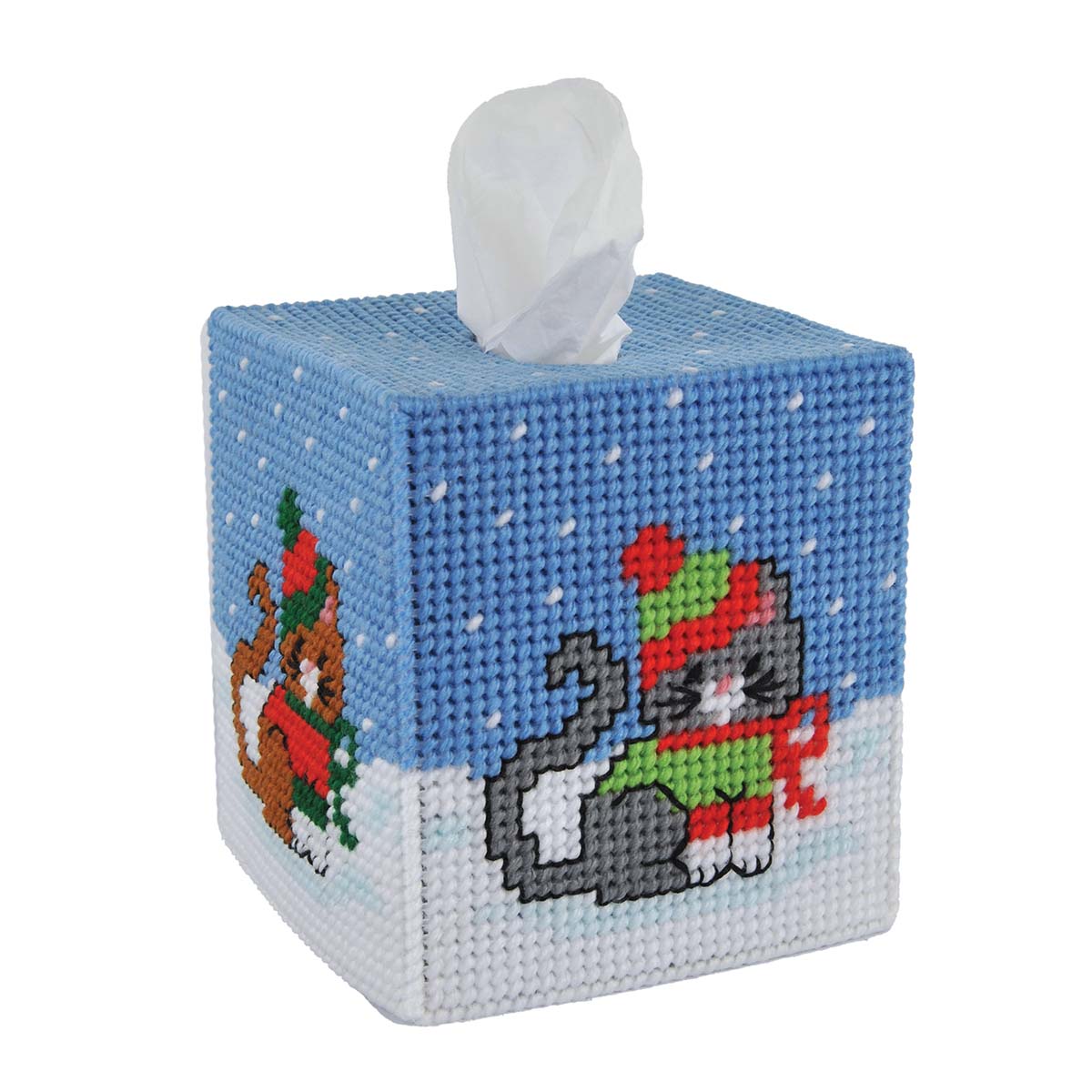 Herrschners  Meowy Christmas Tissue Box Plastic Canvas Kit