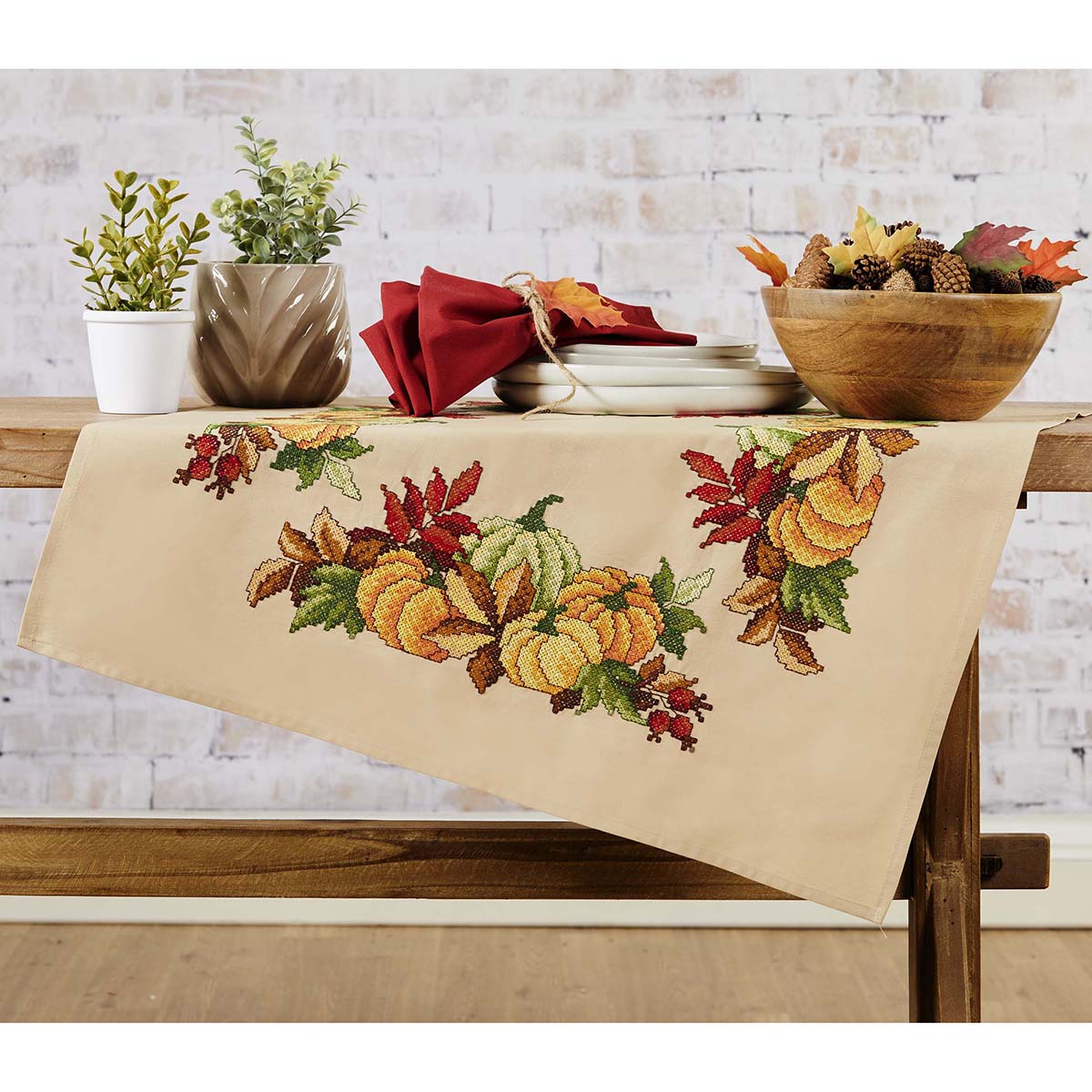 Herrschners Pumpkins & Leaves Table Topper Stamped Cross-Stitch Kit