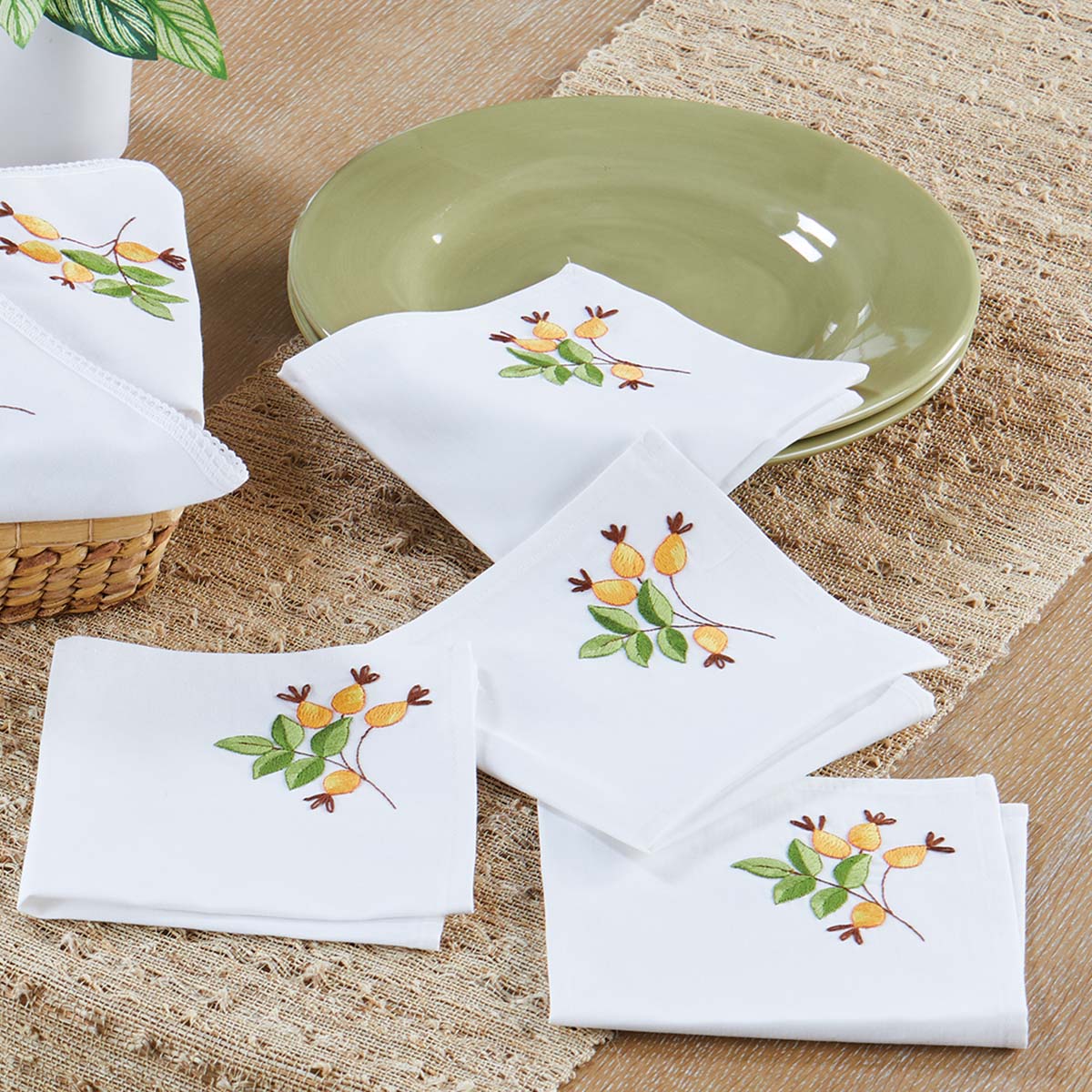 Herrschners Rosehip Napkins Stamped Embroidery