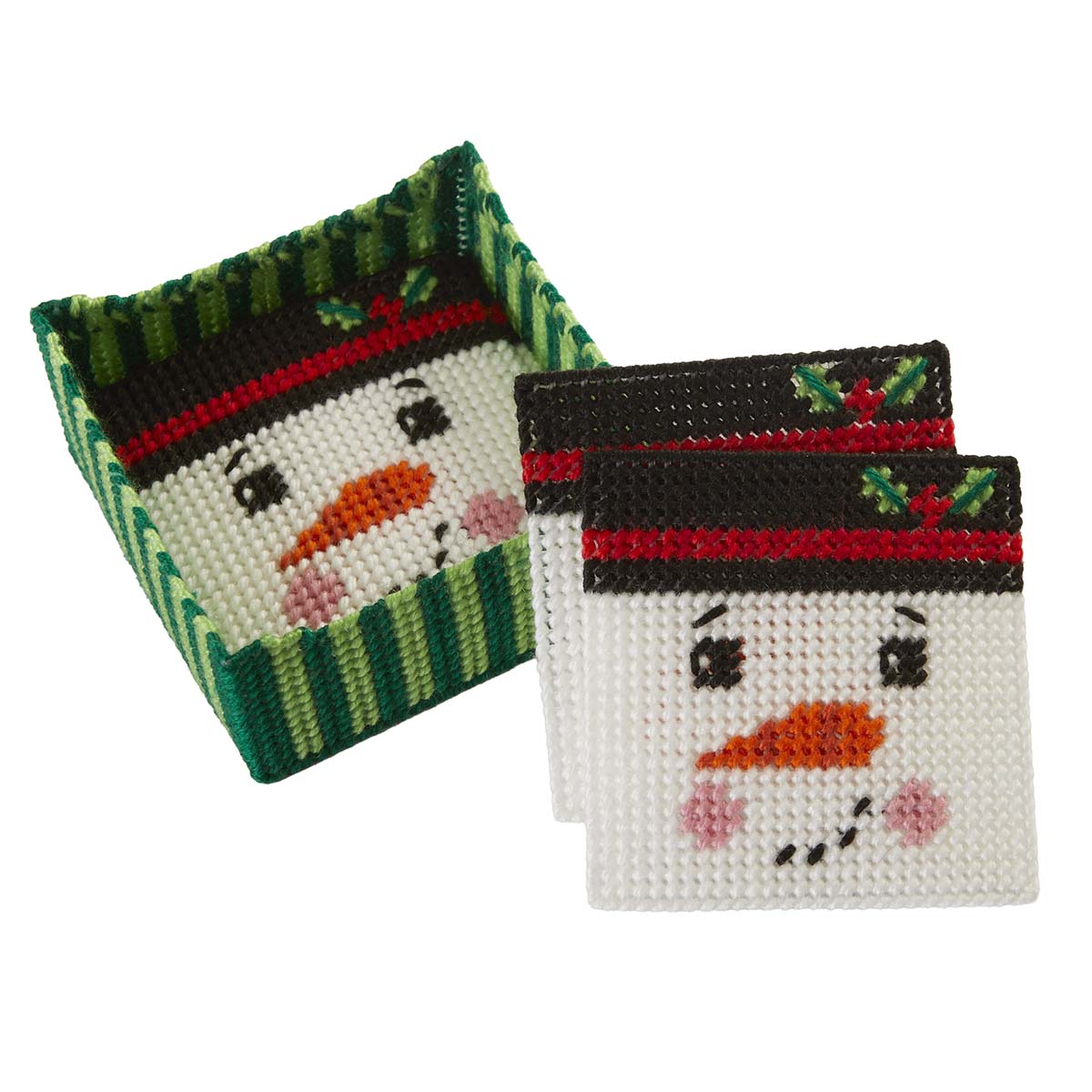 Herrschners Snowman Smiles Coasters with Holder Plastic Canvas Kit