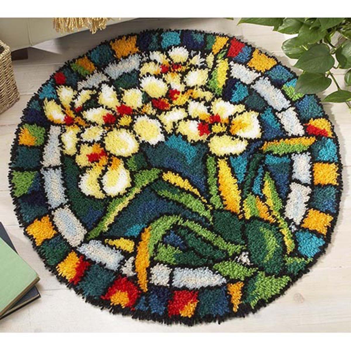 Herrschners Stained Glass White Orchids Latch Hook Kit