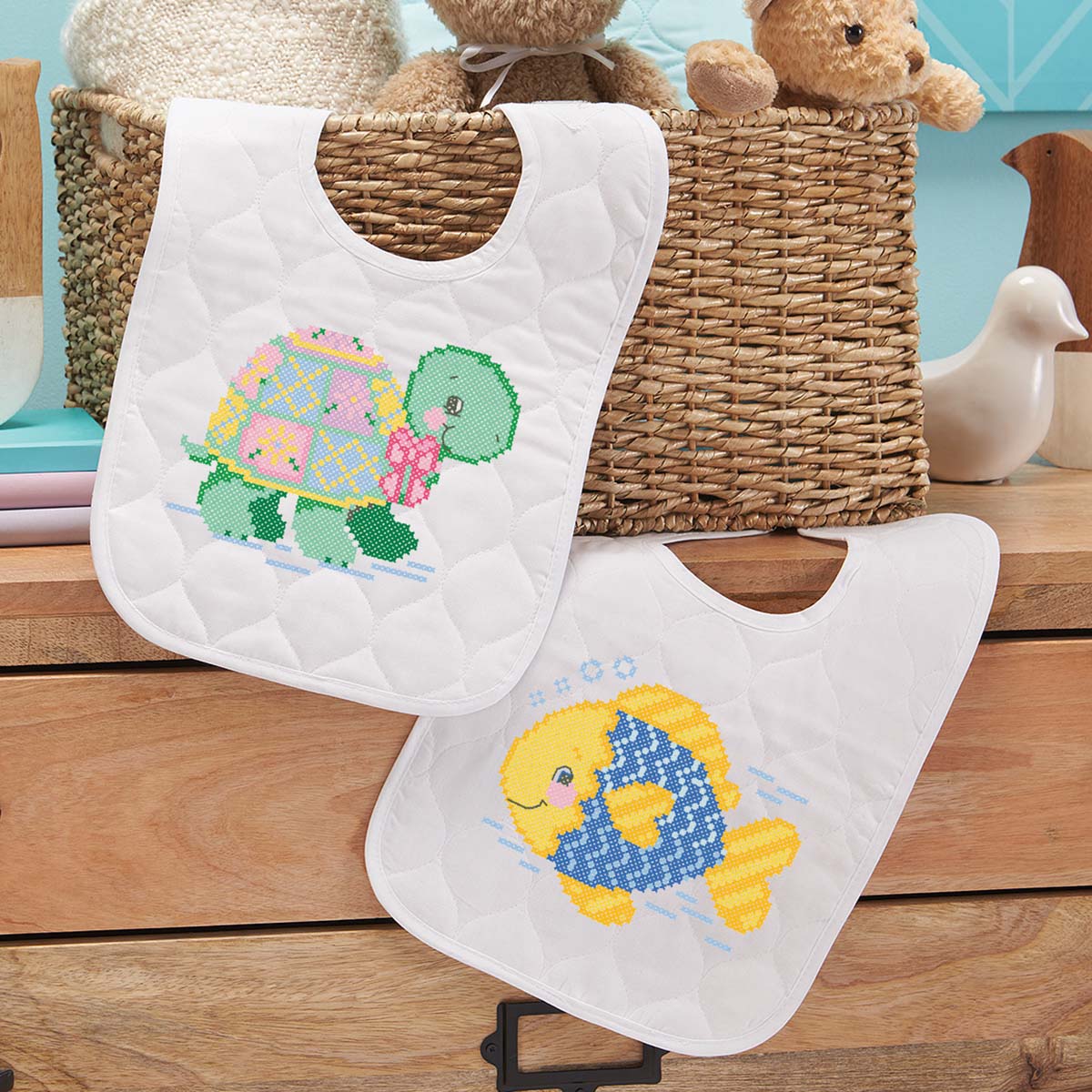 Herrschners Toy Animals Baby Bibs Stamped Cross-Stitch Kit