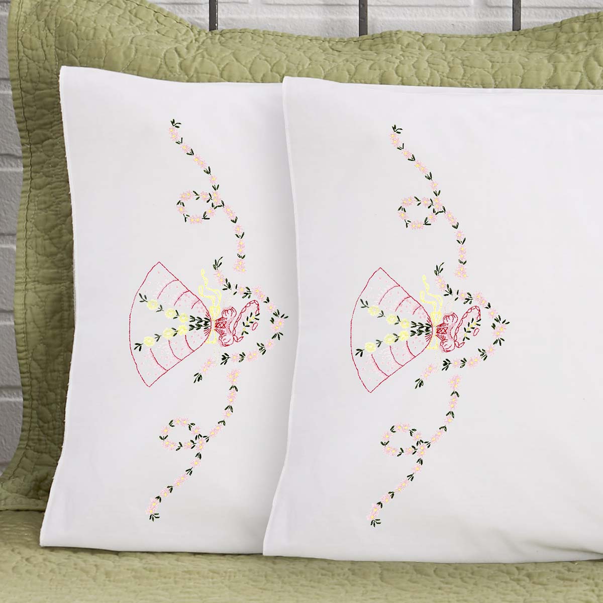 Herrschners Veronica Pillowcase Pair Stamped Embroidery