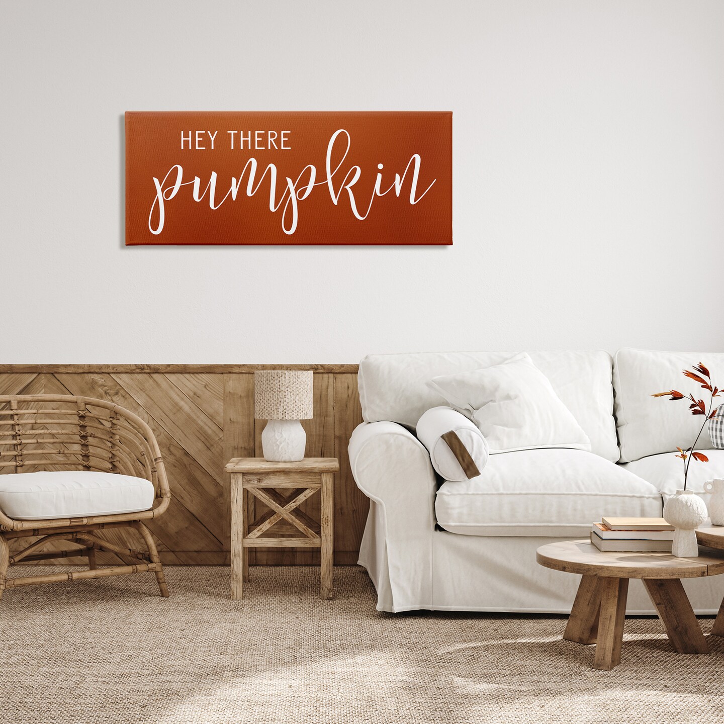Hey There Pumpkin Romantic Calligraphy Script Autumn Theme Canvas Art