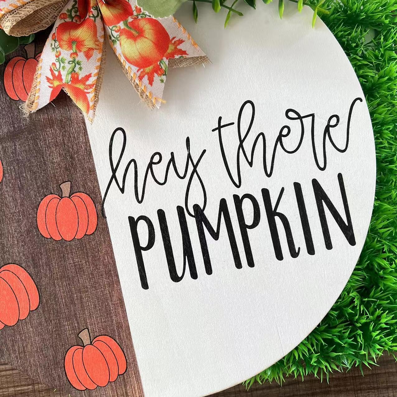 “Hey There Pumpkin” Welcome Sign – 12” Rustic Fall Hanging Door Decor, Wooden Autumn Front Porch Sign with Buffalo Bow & Greenery, Farmhouse Welcome Decoration for Home, Office, Garden & Seasonal Events