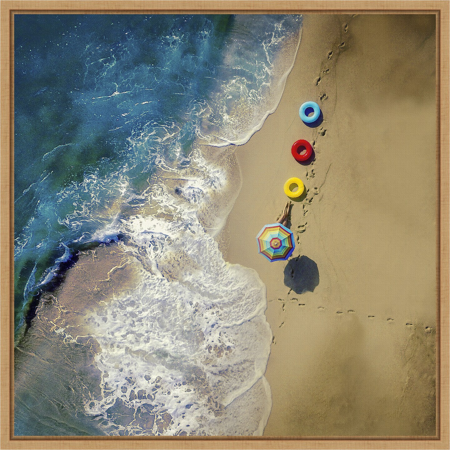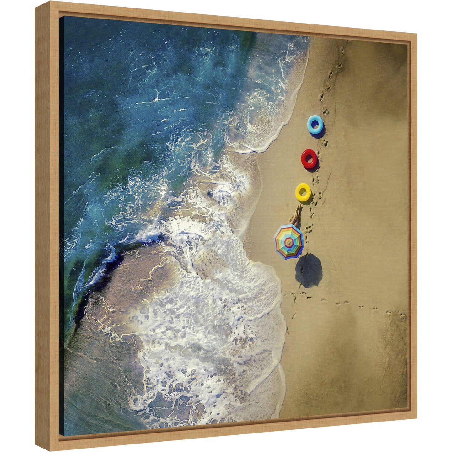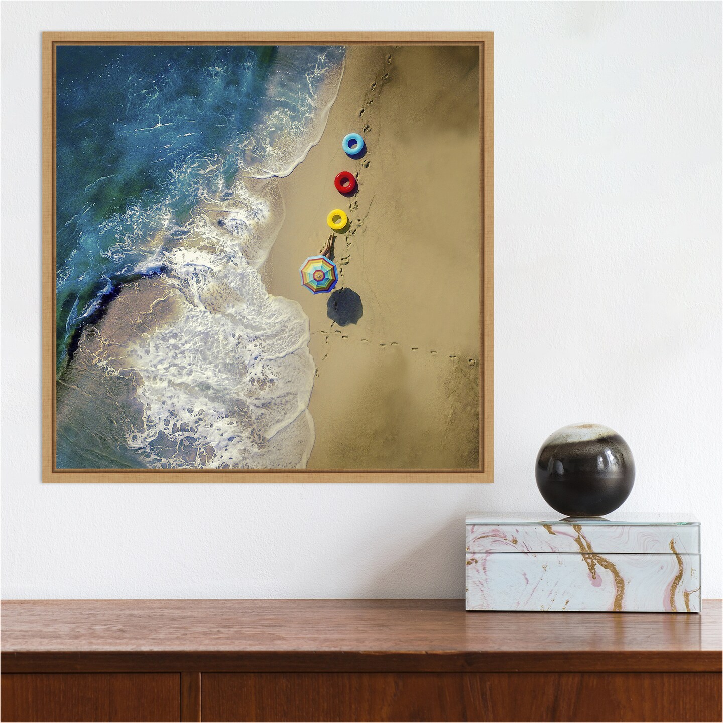 hi summer (Beach) by Ambra 16-in. W x 16-in. H. Canvas Wall Art Print Framed in Natural