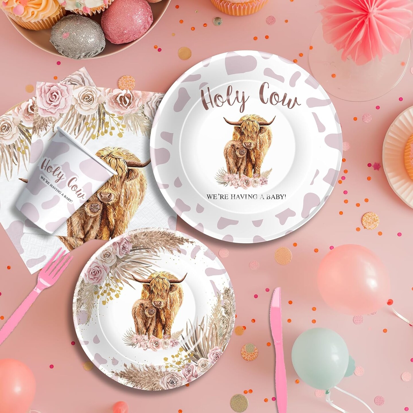 Highland Cow Baby Shower Decorations (Pink)
