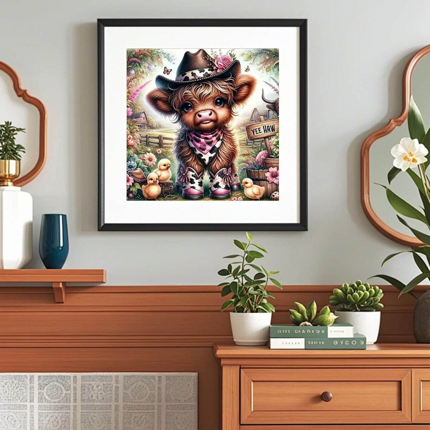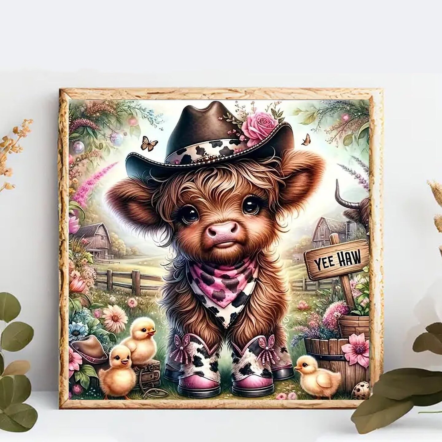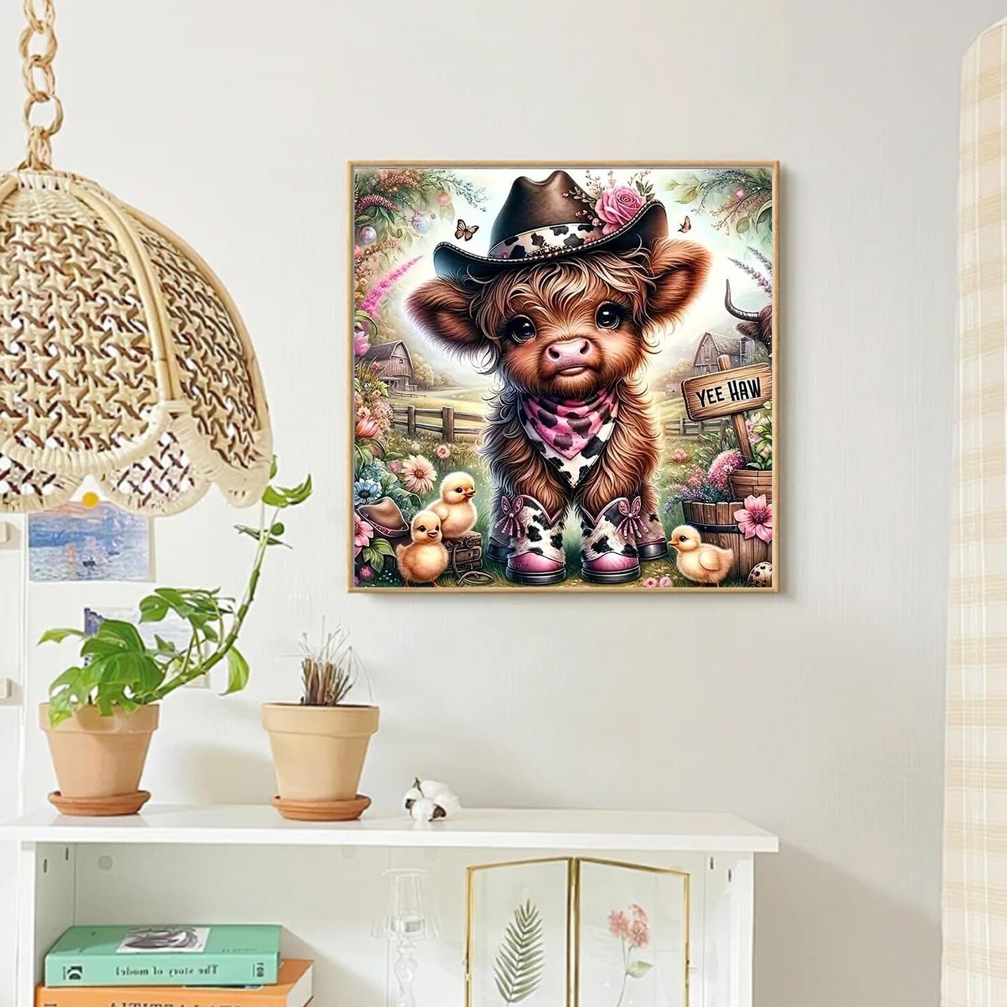 Highland Cow Diamond Painting Kit for Adults – 5D DIY Western Cowboy Girl Full Drill Diamond Art, Beginner-Friendly Gem Craft for Home Wall Decor & Gifts, 12×12 inch