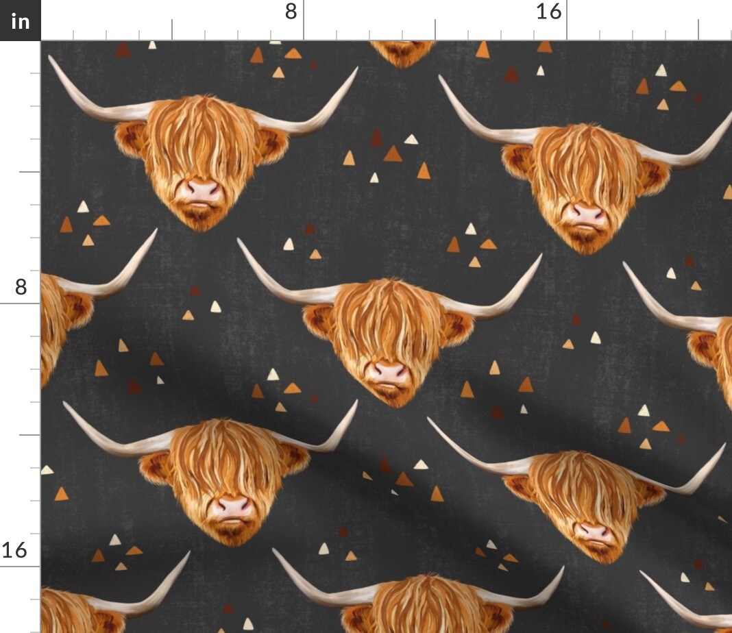 Highland Cow Gender Neutral Grey Background Medium Scale Custom Printed Fabric by Spoonflower Various Fabrics by the Yard or Fat Quarter