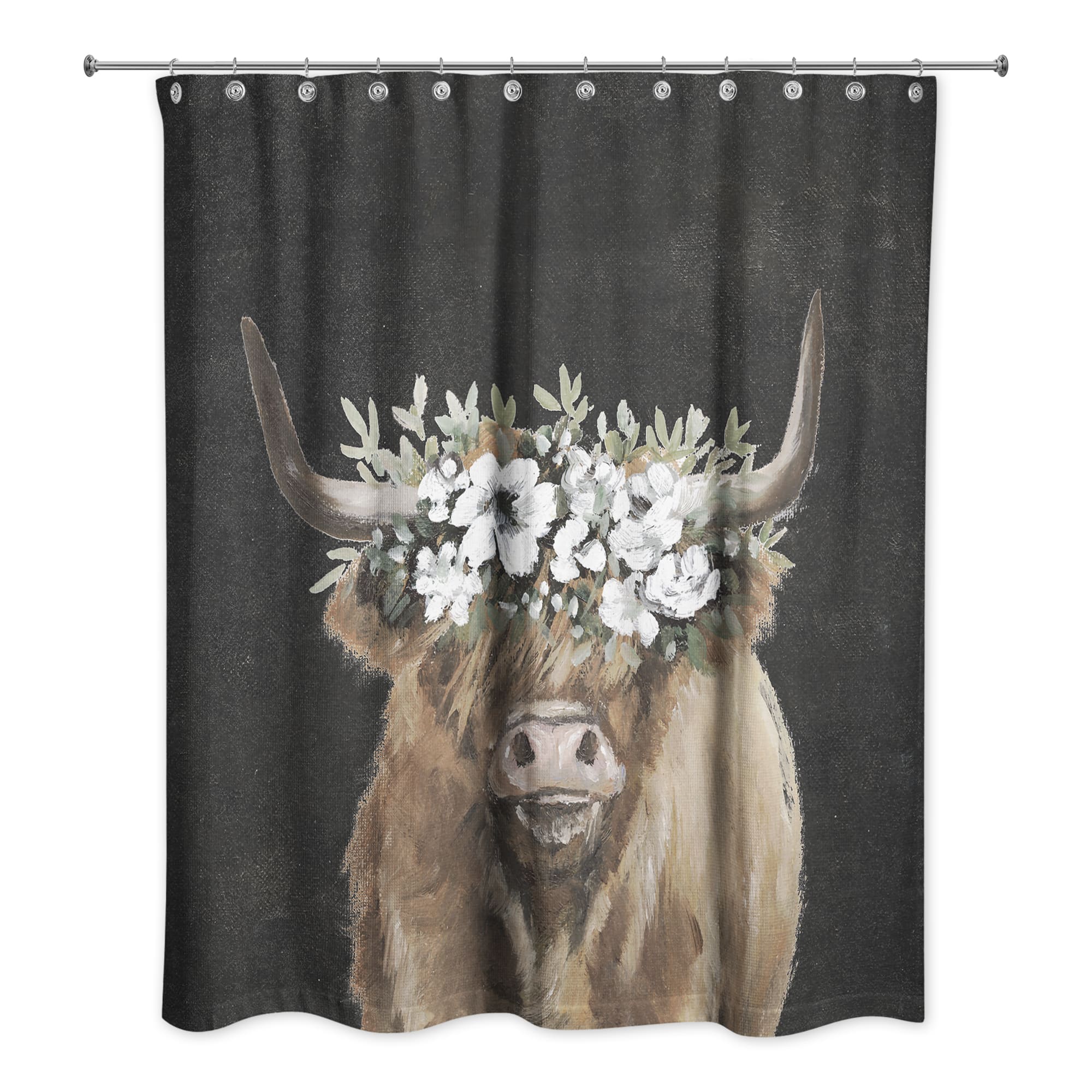 Highland Cow Portrait with Flower Crown 71" x 74" Shower Curtain
