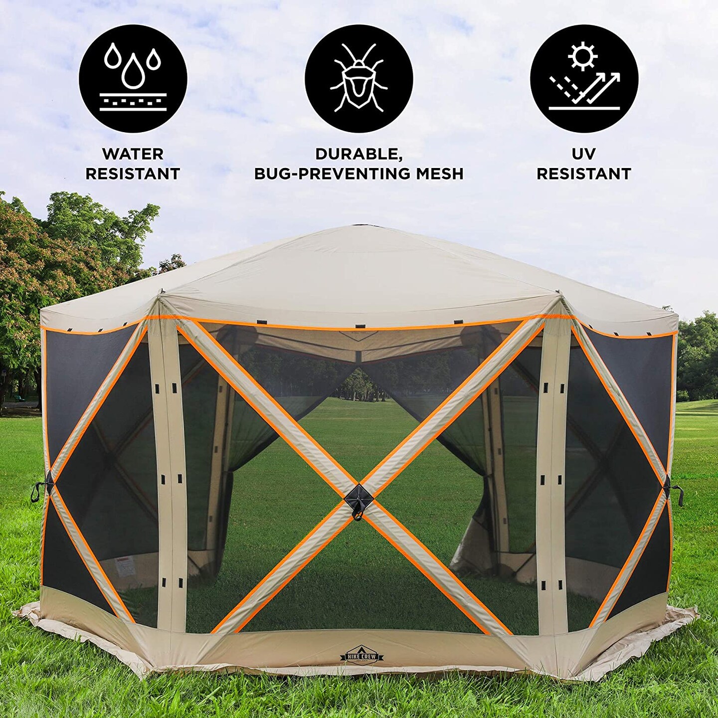 Hike Crew 6-Panel Pop-Up Screen House Gazebo 140"x140" – UV Resistant, Fits 9 People, Instant Setup
