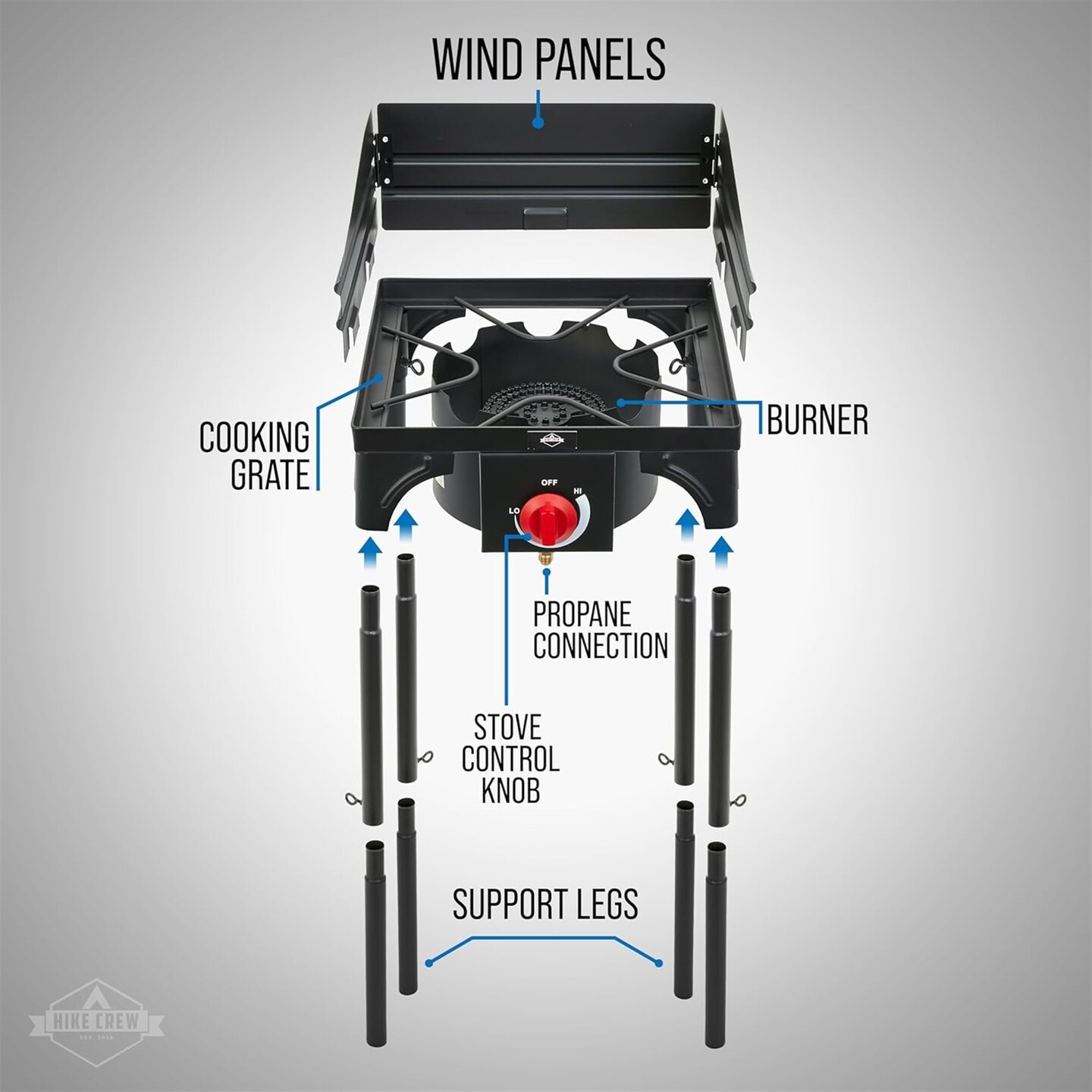 Hike Crew Cast Iron 1-Burner Gas Camping Stove, 75,000 BTU Portable Stove w/Flame Control & More!