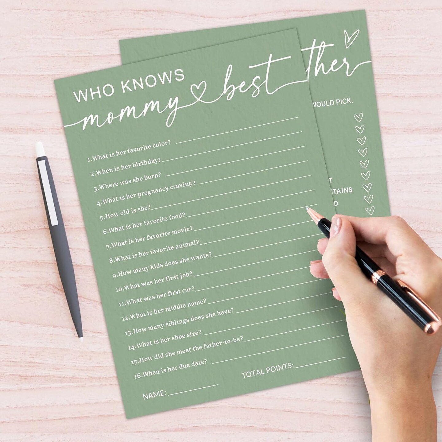 Hilarious Baby Shower Games, Who Knows Mommy Best Game, 5" x 7" Double-Sided Baby Shower Game Cards