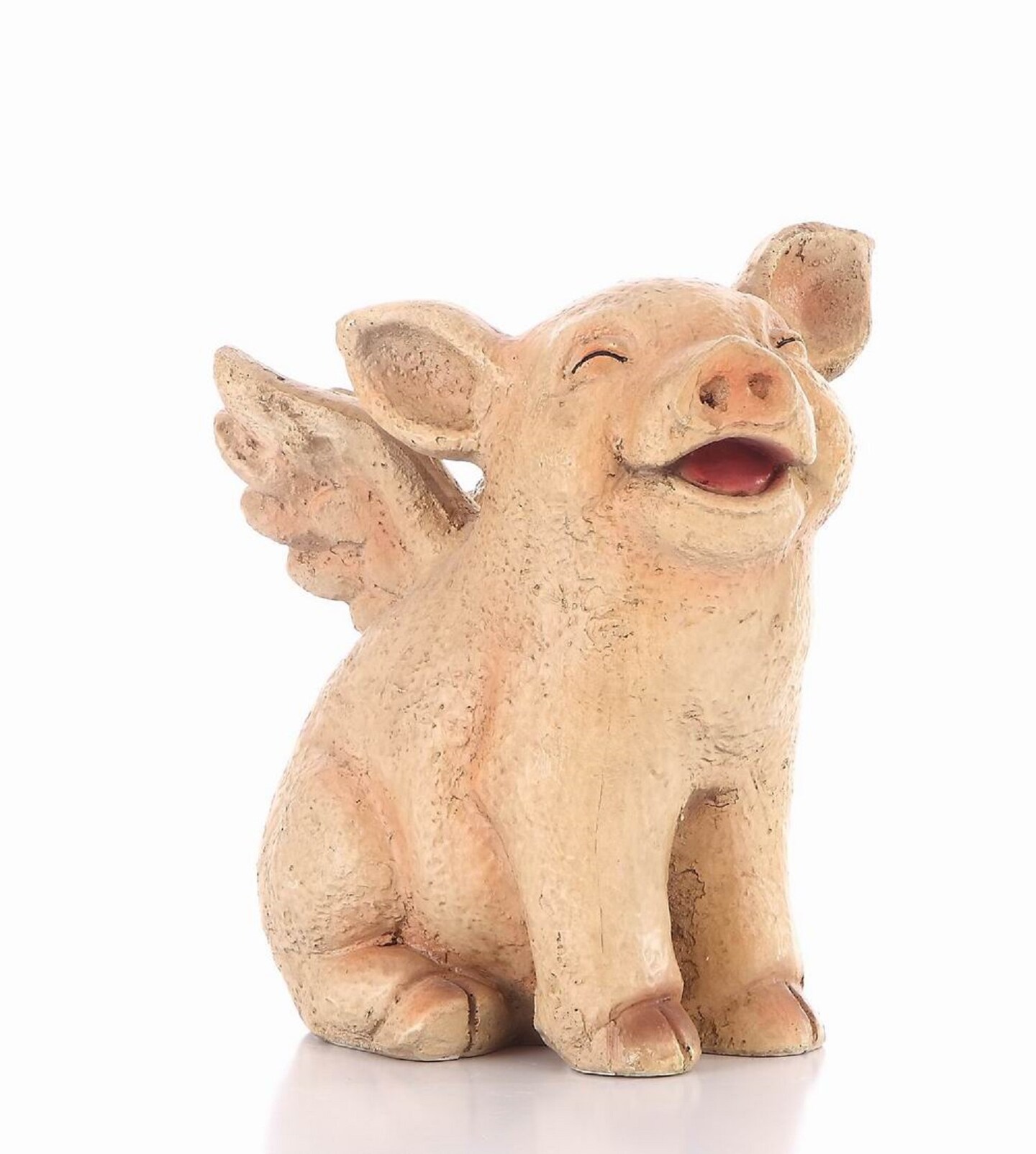 Hi-Line Gifts Laughing Pig with Wings Outdoor Garden Statue - 8.75" - Pink