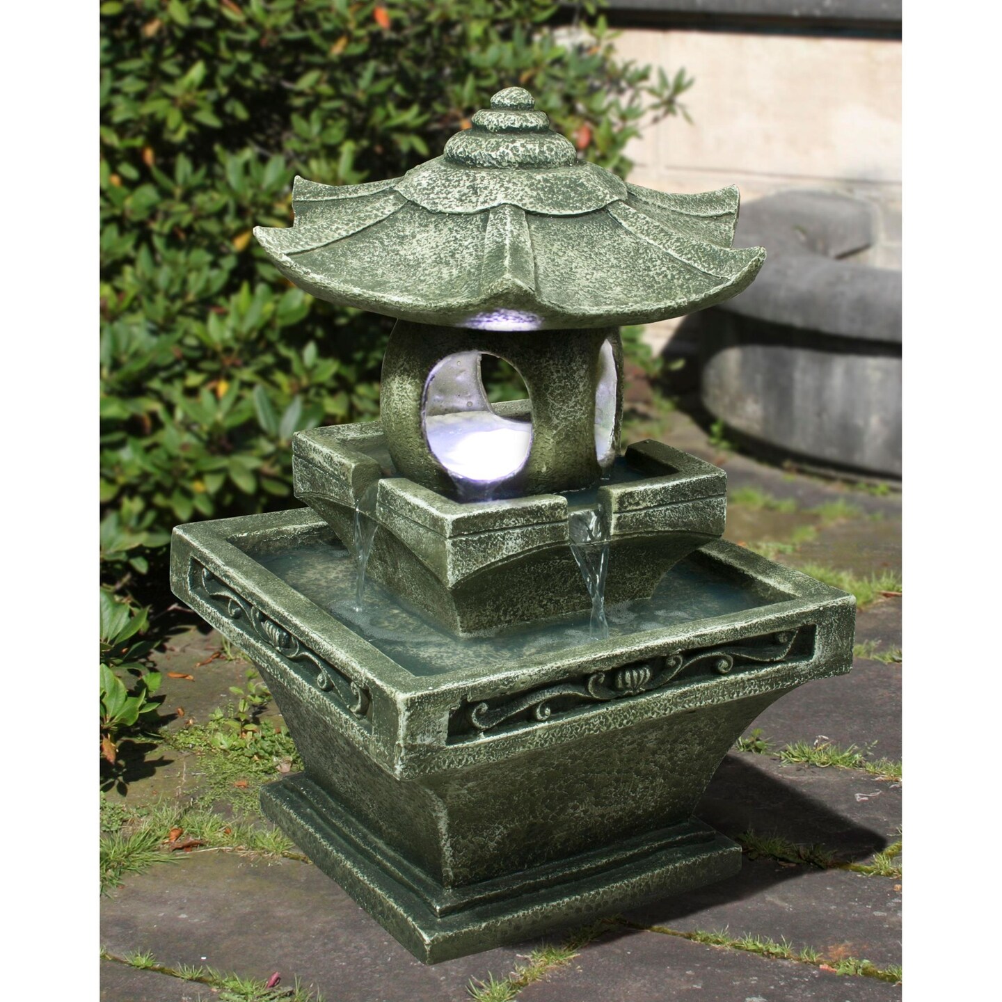 Hi-Line Gifts LED Lighted Cascading Pagoda Lantern Outdoor Water Fountain - 25.25"