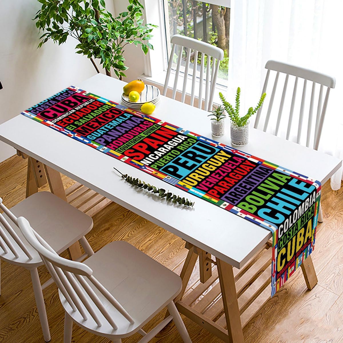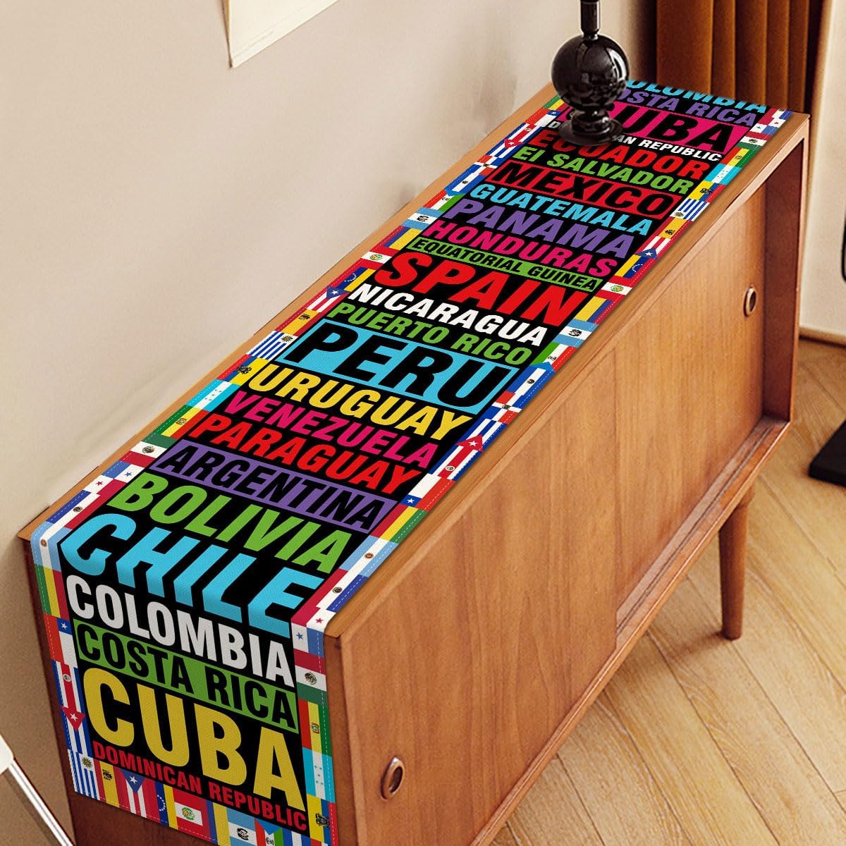 Hispanic Heritage Month Table Runner 21 Spanish Speaking Latino Countries Flags (13" x 72")(Multi-color)