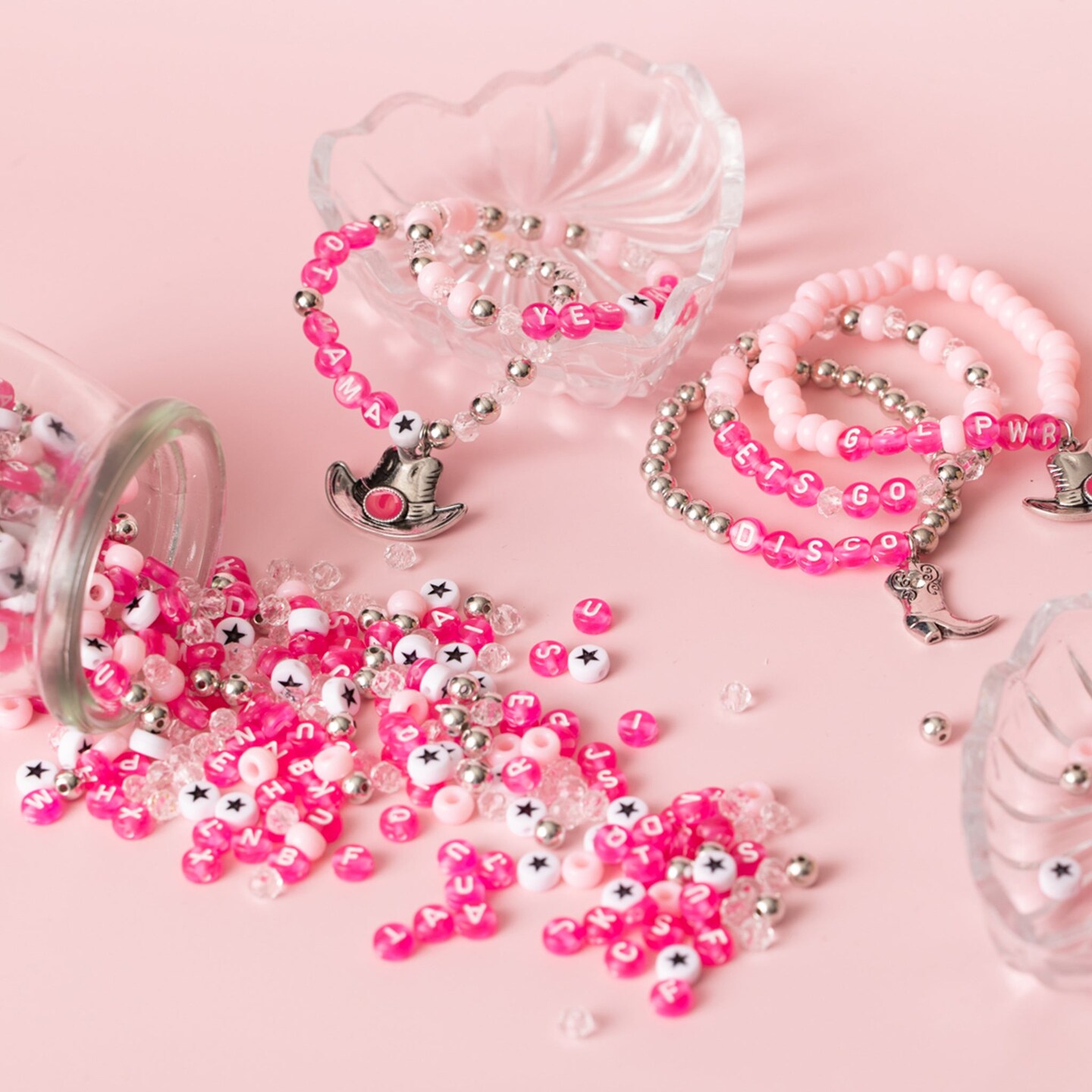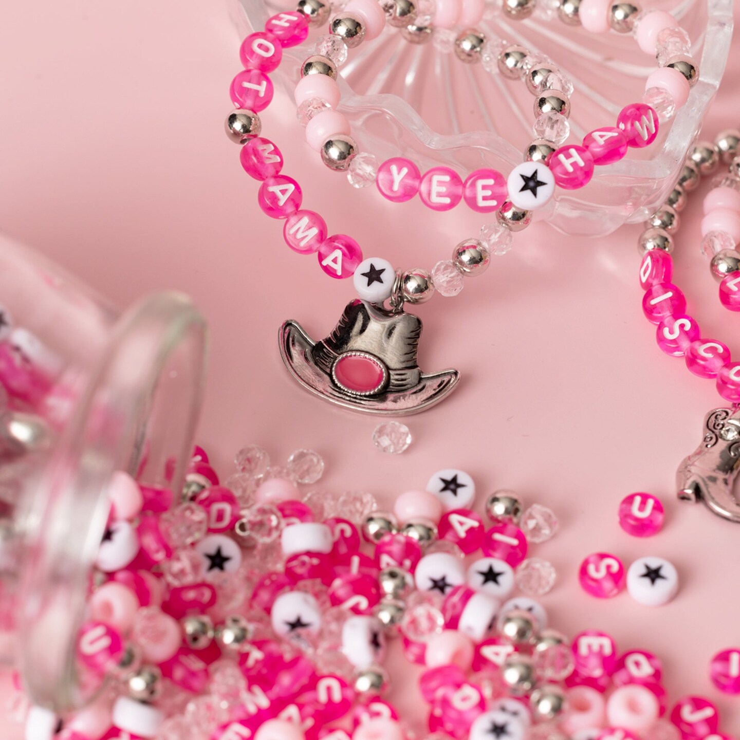 Hold 'Em Cowgirl Western Pink Letter DIY Bead Jar