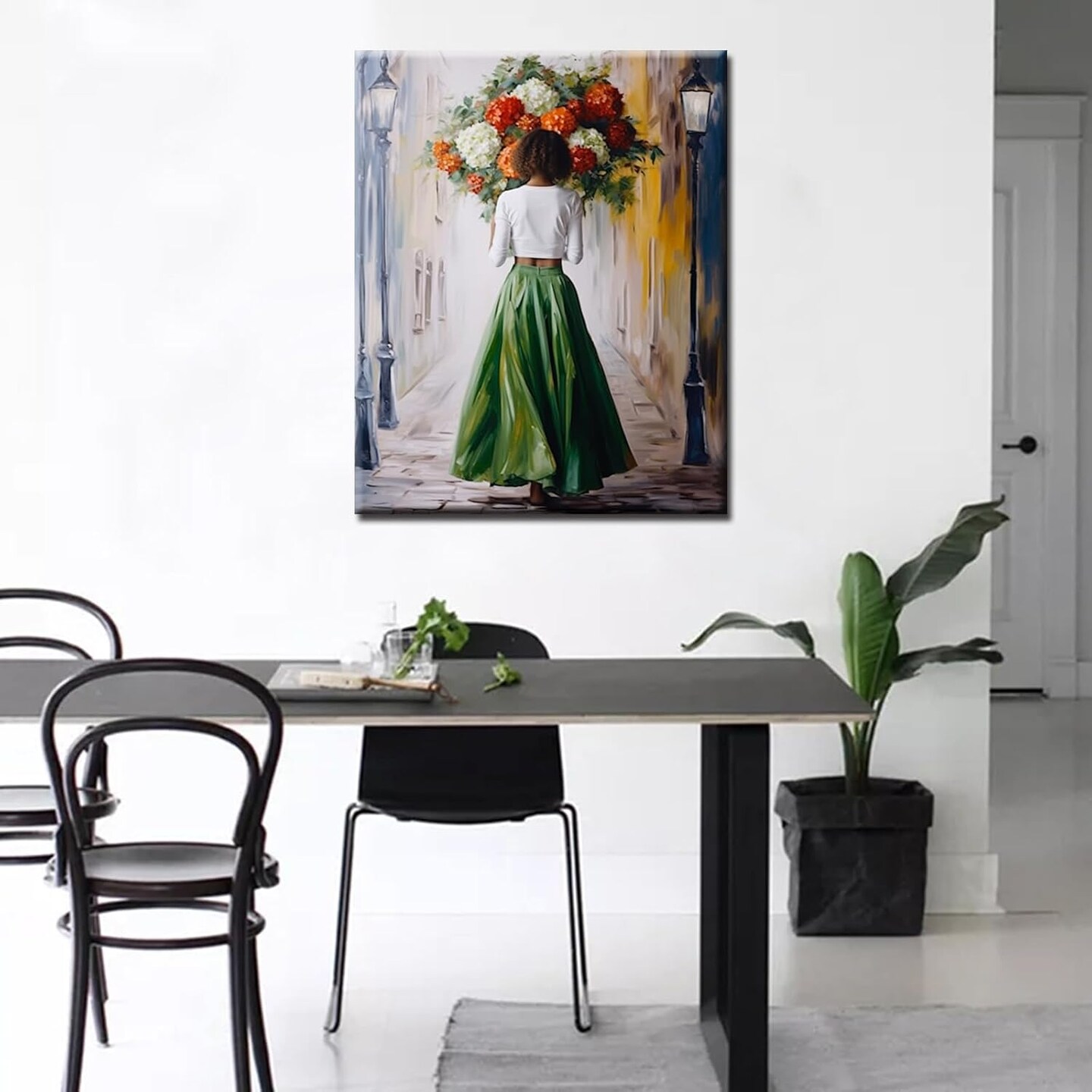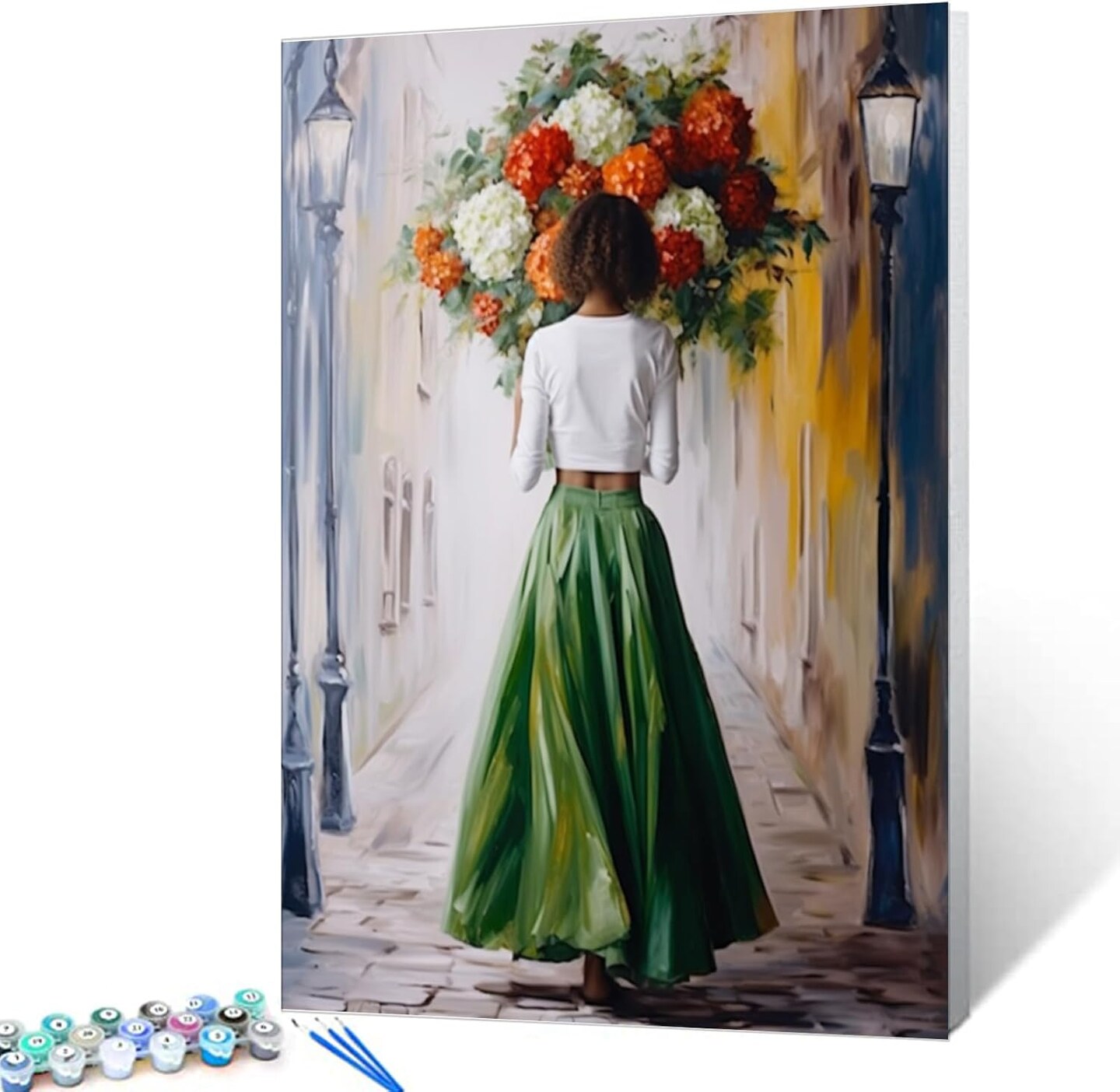 Holding Bouquet Woman Paint by Numbers – Lady Walking on Street DIY Canvas Painting Kit with Brushes & Acrylic Paints, Adult & Beginner Art Set, 16x20 Inch (Unframed)