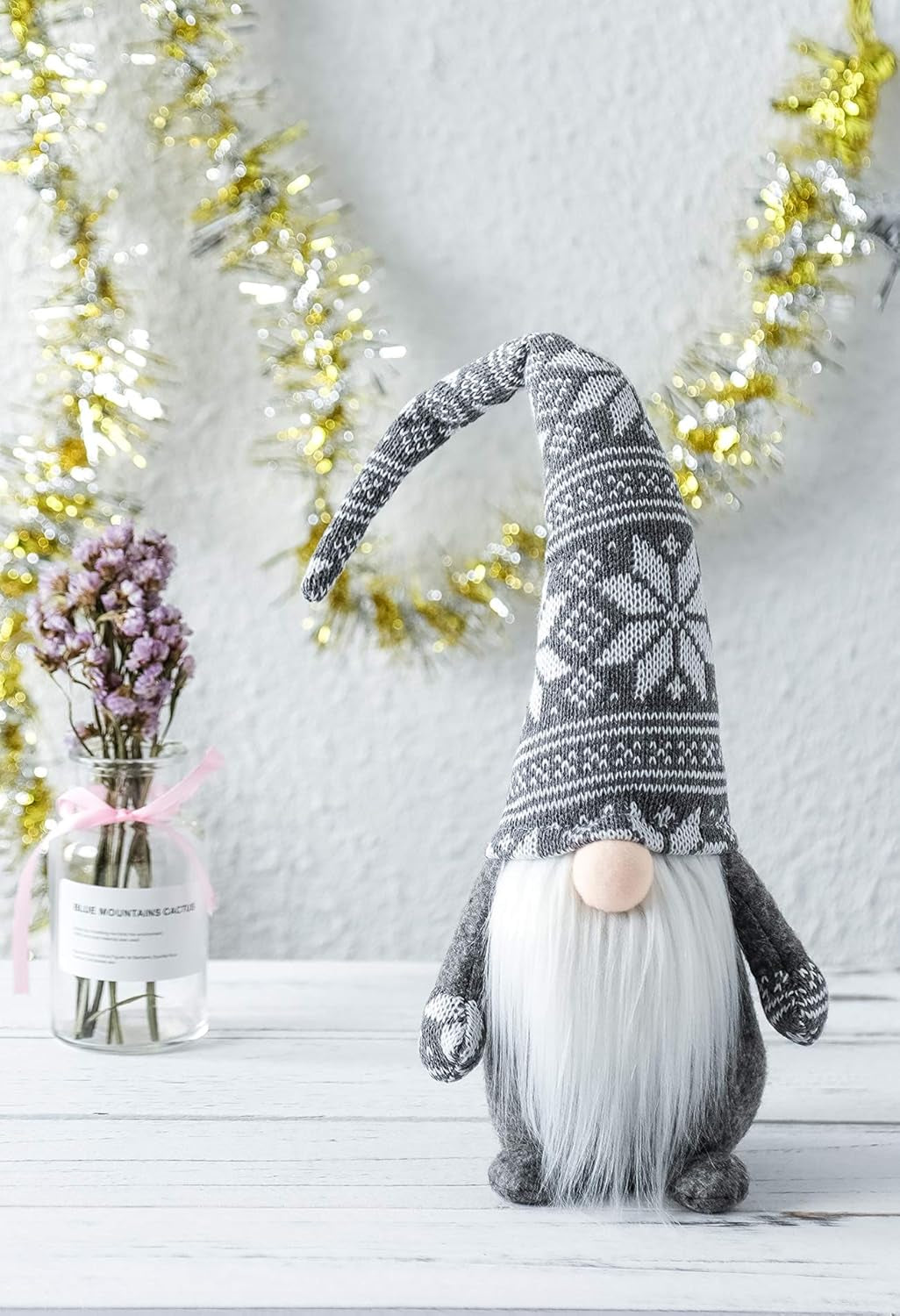 Holiday Gnome Handmade Swedish Tomte, Christmas Elf Decoration Ornaments Thanks Giving Day Gifts Swedish Gnomes Tomte (Grey Snowflake-19 Inches)
