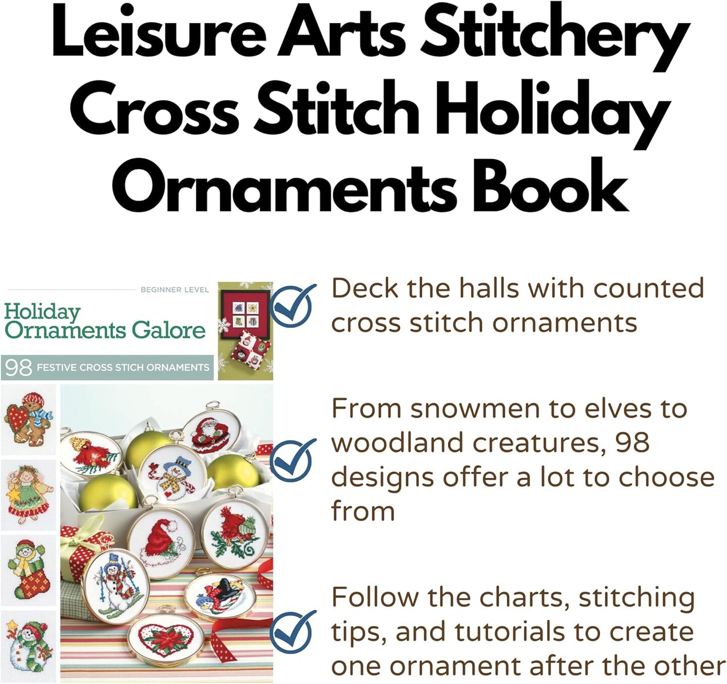 Holiday Ornaments Galore Cross Stitch Pattern Book – 98 Christmas Designs from Snowmen, Elves & Woodland Creatures, DIY Ornament Kits