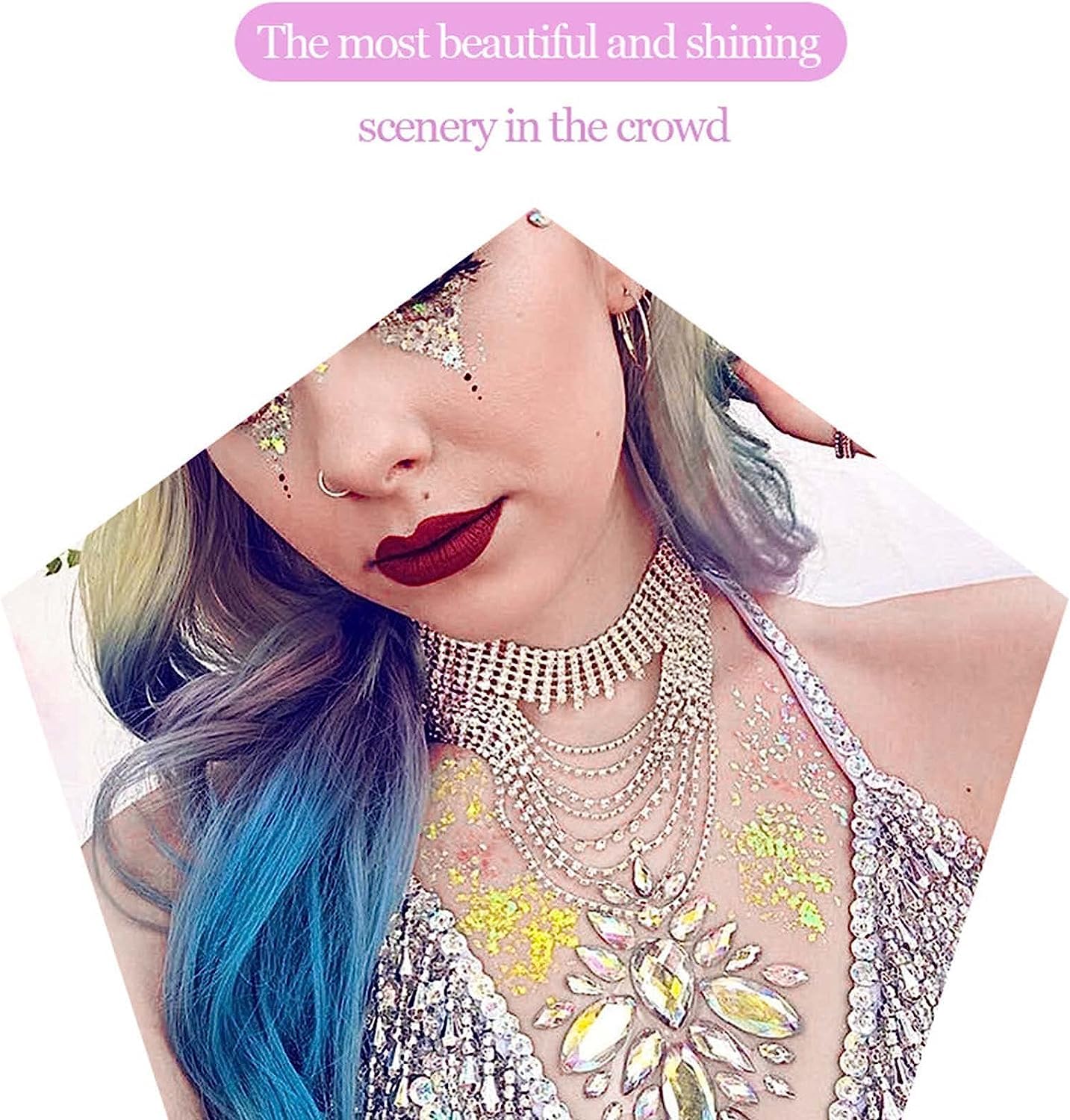 Holographic Body Glitter Gel – Chunky Festival Glitter for Face, Hair, Nails & Makeup | Shimmering Sequins Gel with Stars & Moons, Long-Lasting Sparkle (50ml, Silver)
