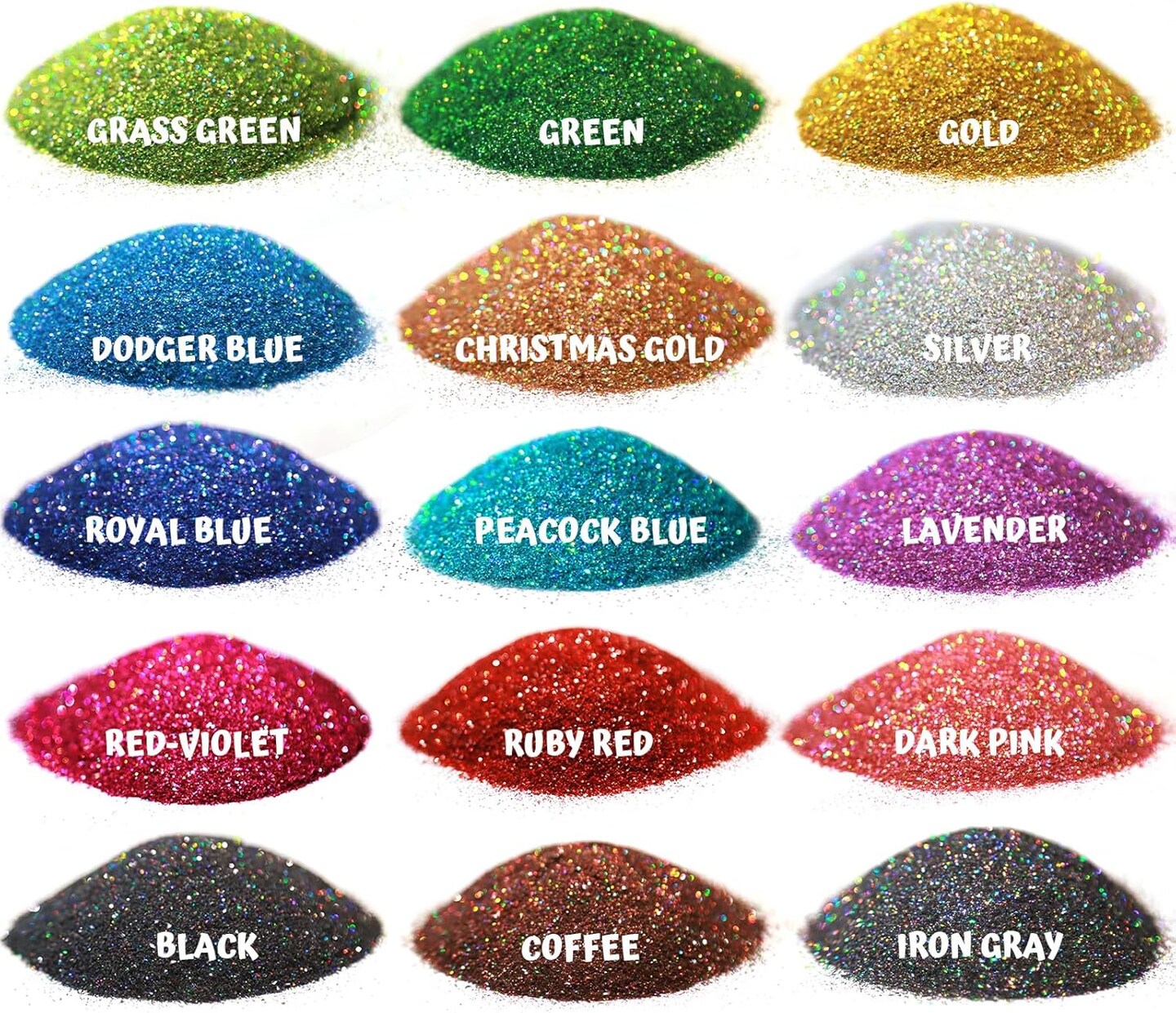 Holographic Fine Glitter, 15 Colors Fine Glitter for Crafts, Resin, Jewelry Art Crafts Making, Nail Body, with 10 PCS Stir Spoons