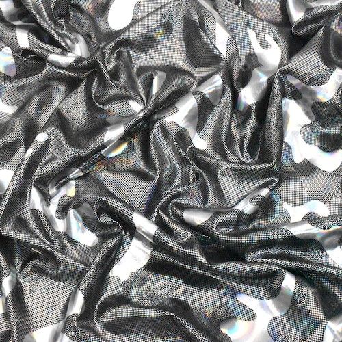 Holographic Silver Camo Printed Stretch Activewear Fabric By the Yard