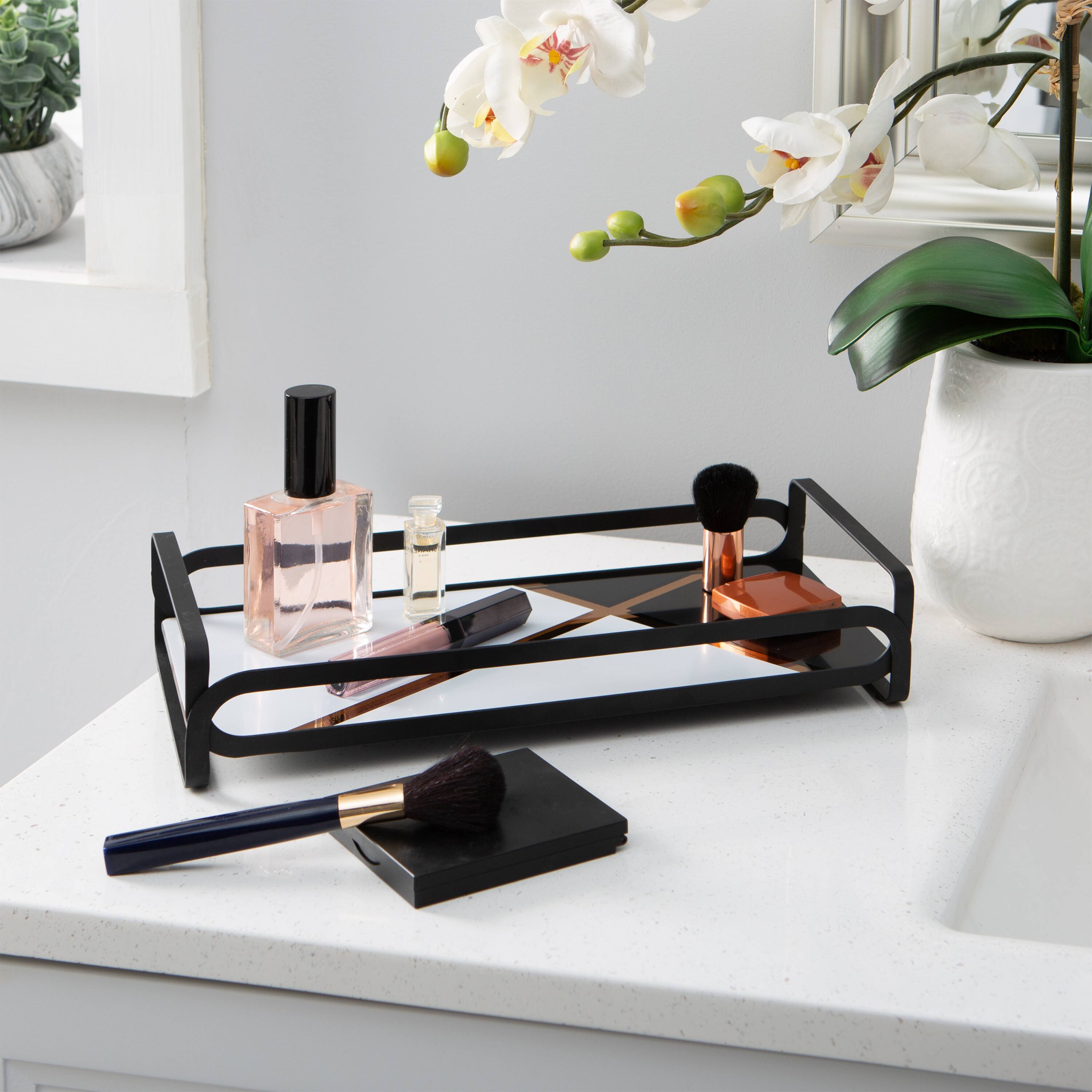 Home Details 14" Matte Black Color Block Vanity Tray