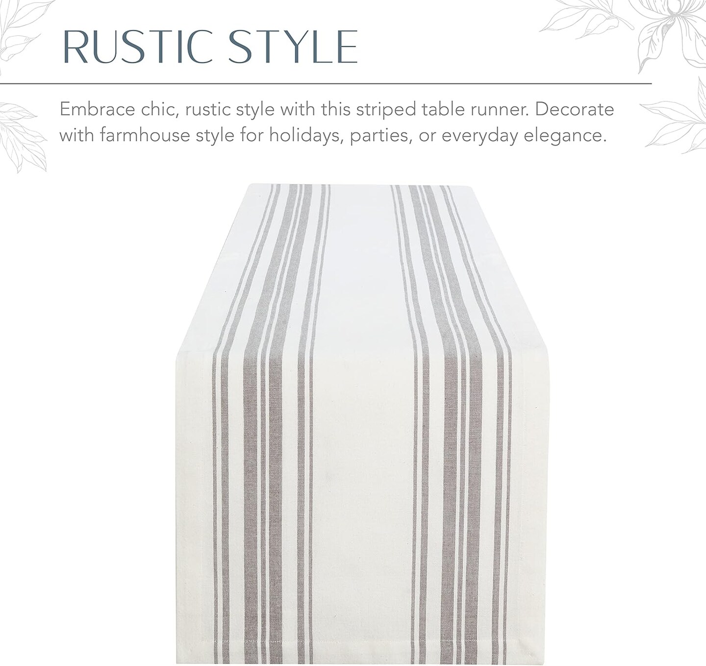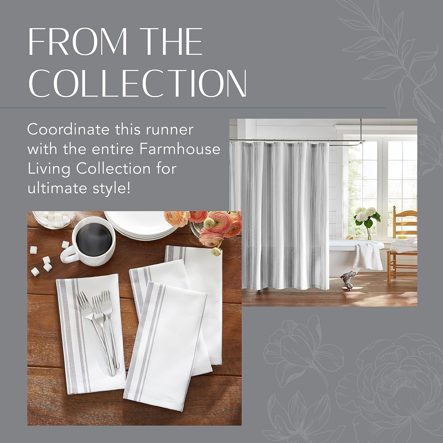 Home Fashions Living Homestead Stripe Table Runner, Farmhouse Kitchen Decor for Holiday or Everyday Use, 13" x 70", Gray/White