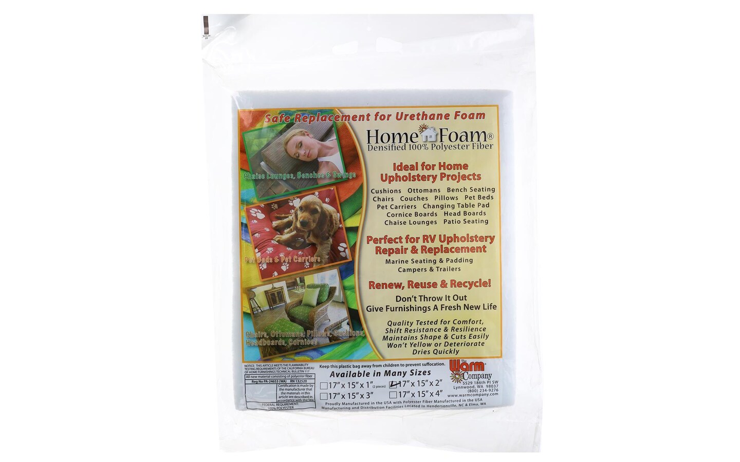 Home Foam Polyester Fiber 17x15x2"