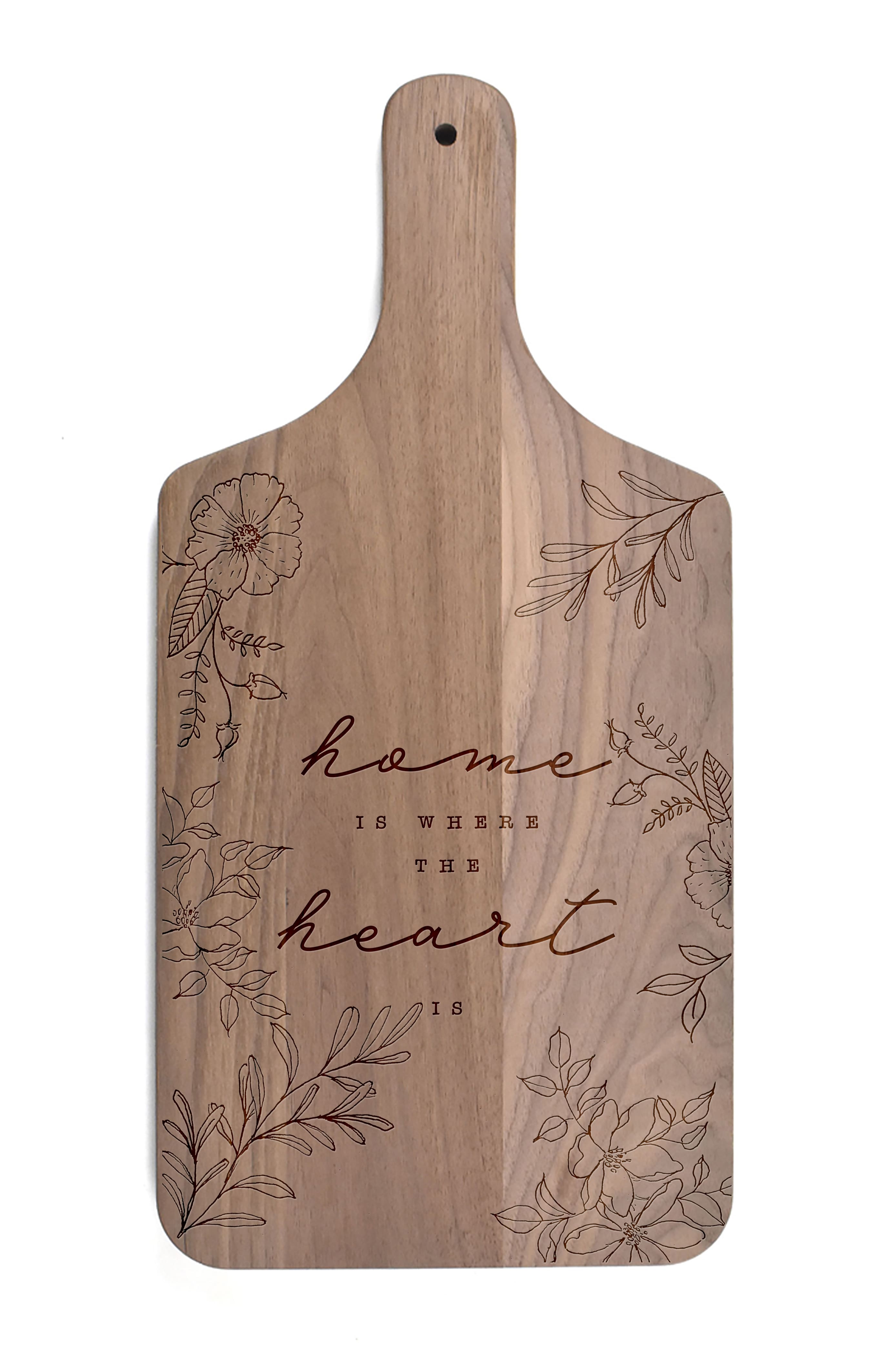 Home is Where the Heart Is Floral 8" x 17" Walnut Paddle Cutting Board