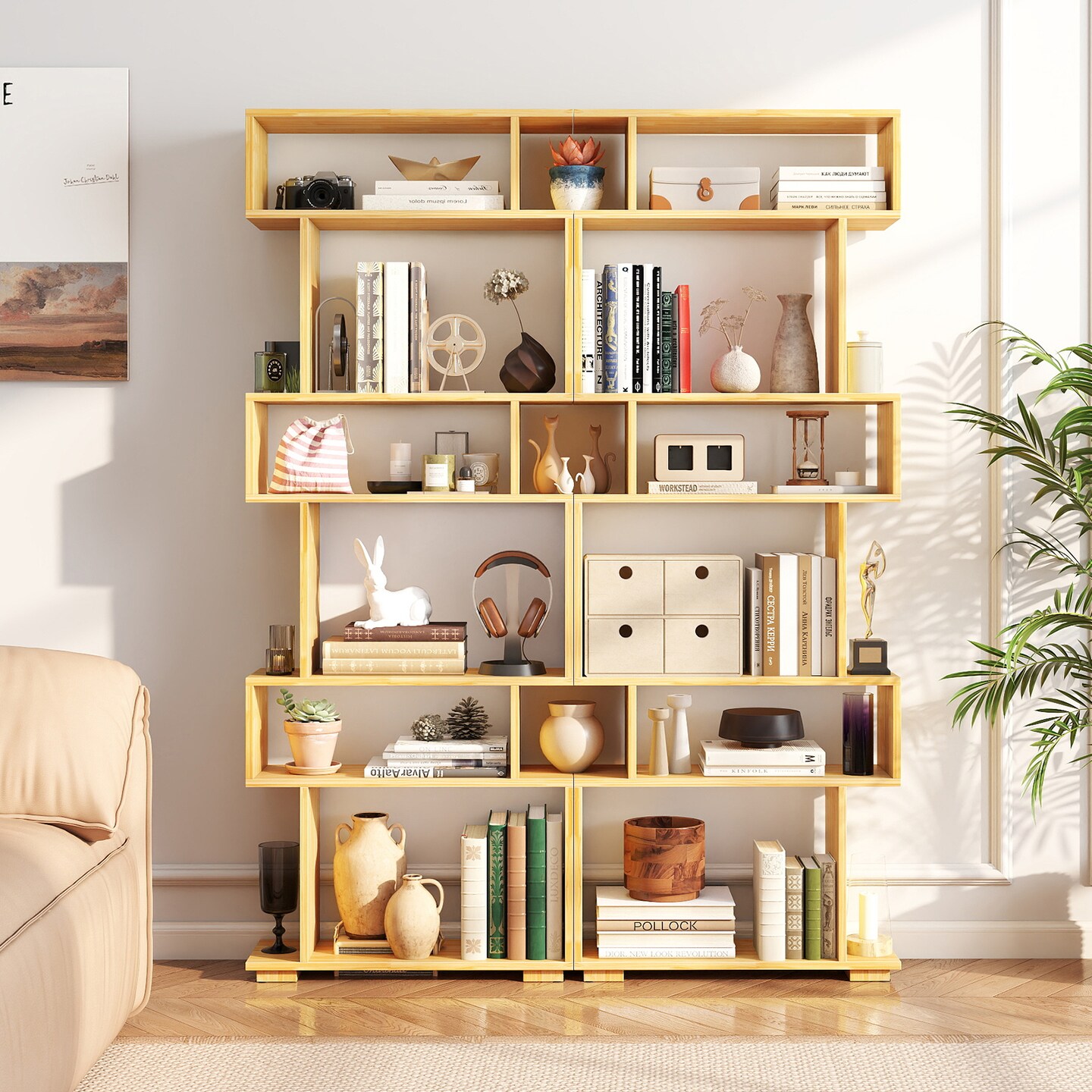 Home Office 6-Tier Geometric Bookshelf with 2 Anti-Tip Kits