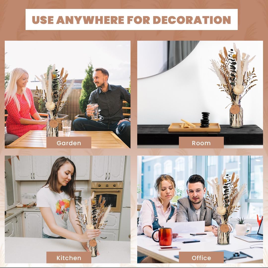 Homey Breeze Natural Dried Pampas Grass (Glass Vase Included) 15 Inches 23 Pcs 10 Styles Included, Small Pampas Dried Flower Arrangement