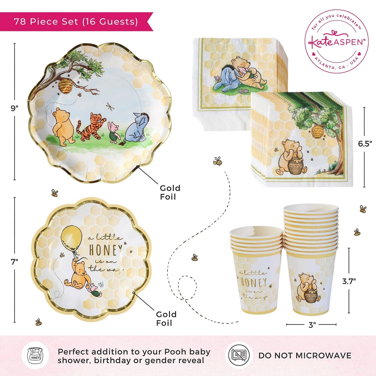 Honey Bear 78 Piece Baby Shower Tableware Set - (16 Guests)