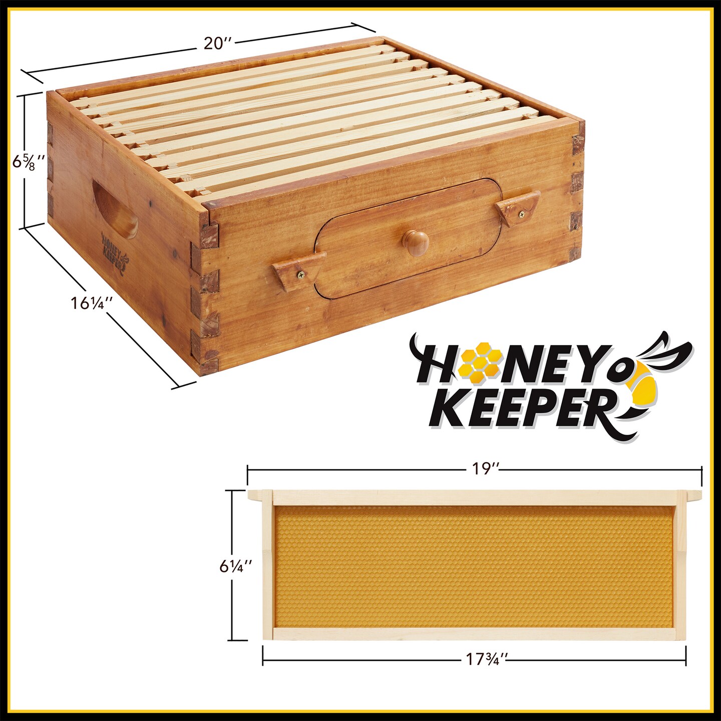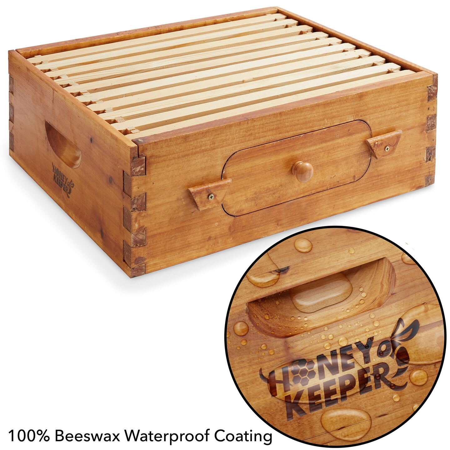 Honey Keeper Brood Box with Window, 100% Beeswax Coated Beehive Kit with 10 Wooden Frames and Waxed Foundations for Langstroth Beekeeping