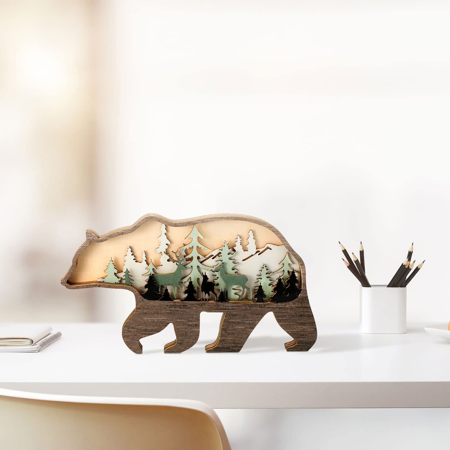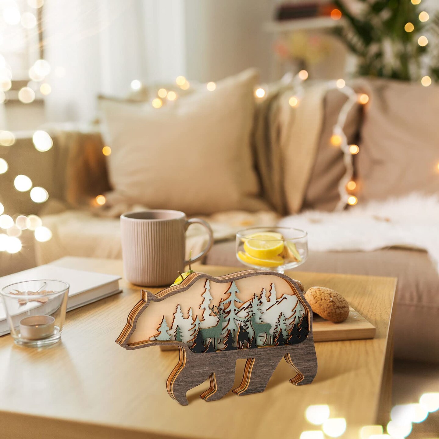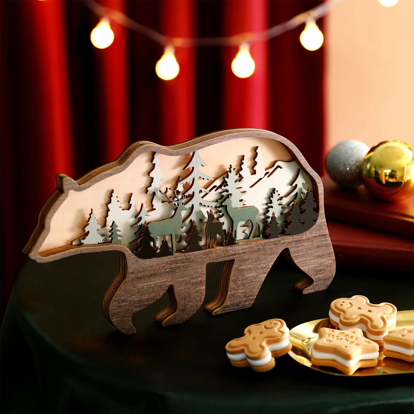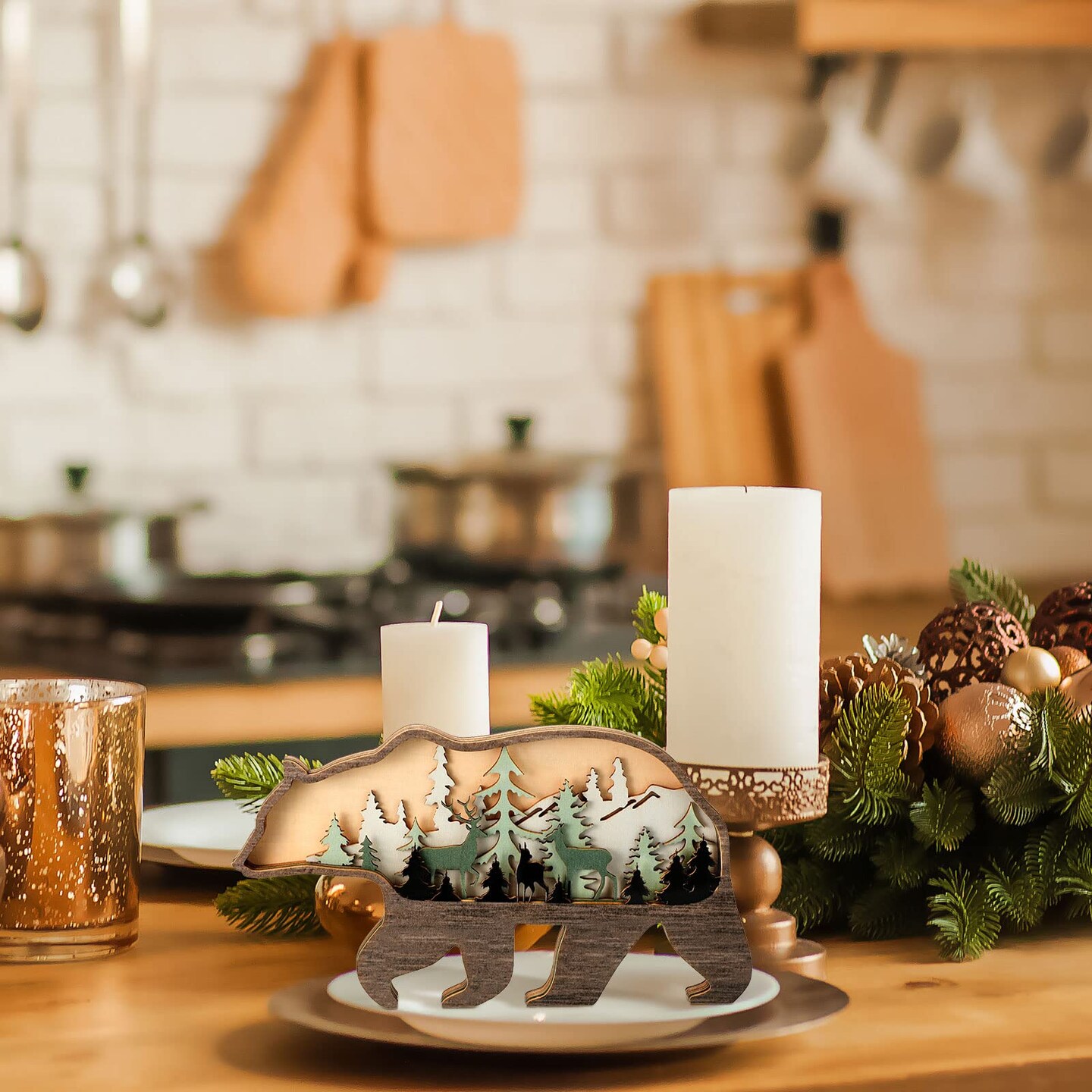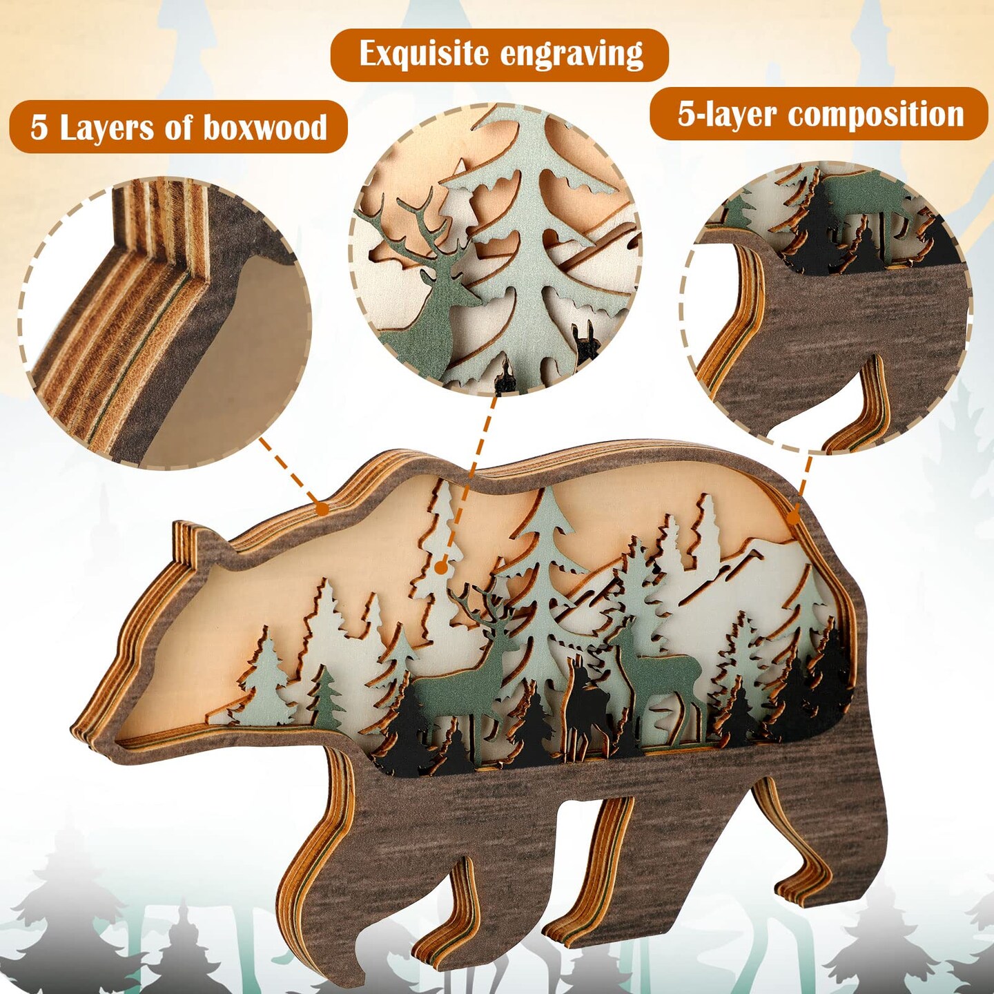 Honoson Forest Animal Rustic Wall Art Decor Wooden Farmhouse Wall Decoration Wooden Animal Decor Wood Forest and Mountain Ornaments for Cabin Bedroom Living Room Decor (Bear Style, Colorful)