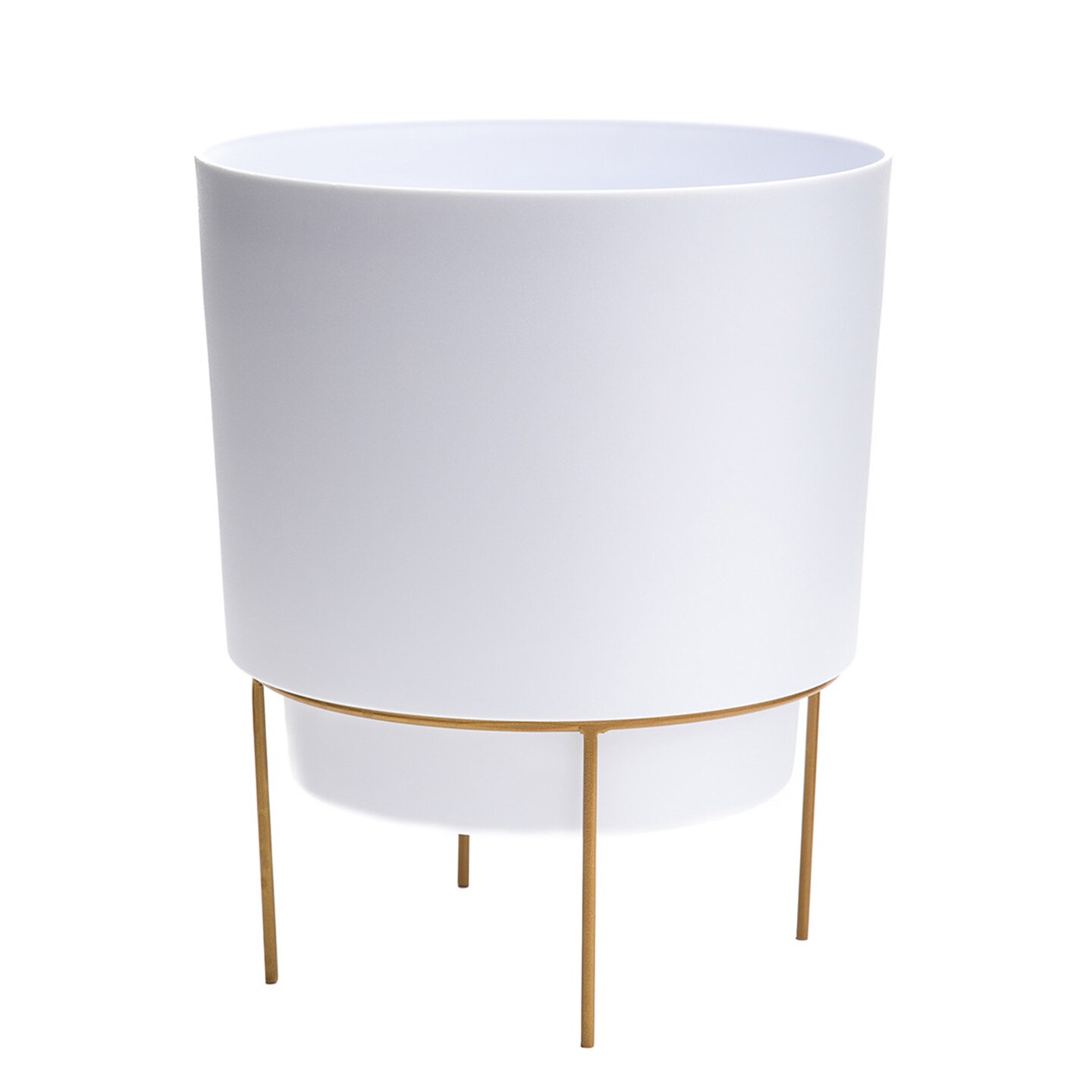 Hopson 14" Casper White Planter w/ Metal Gold Stand Made of Durable Resin, Indoor/Outdoor Use