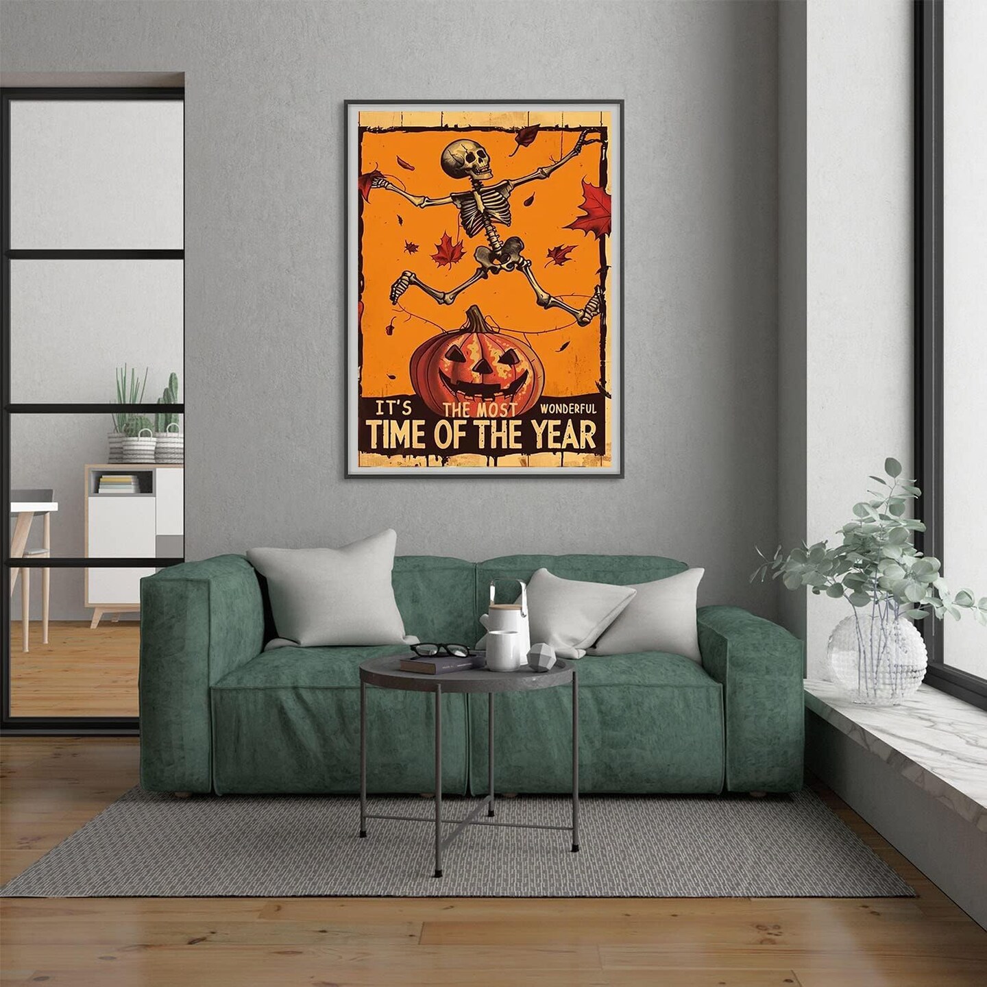 Horror 5D DIY Full Round Drill Diamond Painting Kits Pumpkin,Paint by Diamonds Dot Gem Art Crystal Skeleton Easy,Home Wall Decor