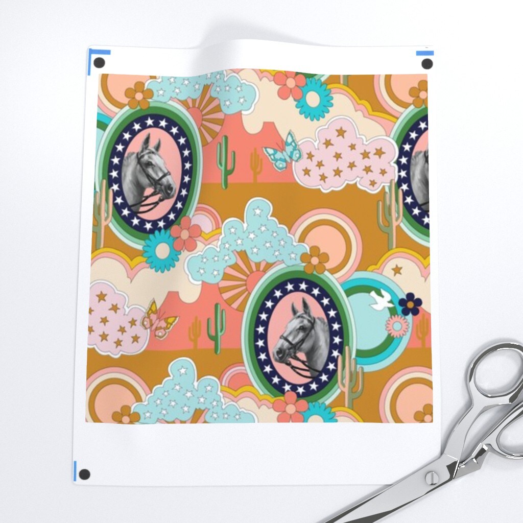 Horse Cactus Butterfly Bird Flower 70S Pop Art Clouds Western Cowboy Cowgirl Custom Removable Wallpaper by Spoonflower Peel & Stick Wallpaper 2FT Wide